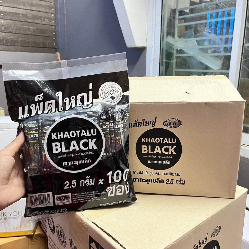 กาแฟดำเขาทะลุ แบล็ค [แบบยกกล่อง 8 ห่อใหญ่] ตรา คอฟฟี่ฟาร์ม กาแฟจากชุมพร ขนาด 2.5 กรัม * 100 ซอง