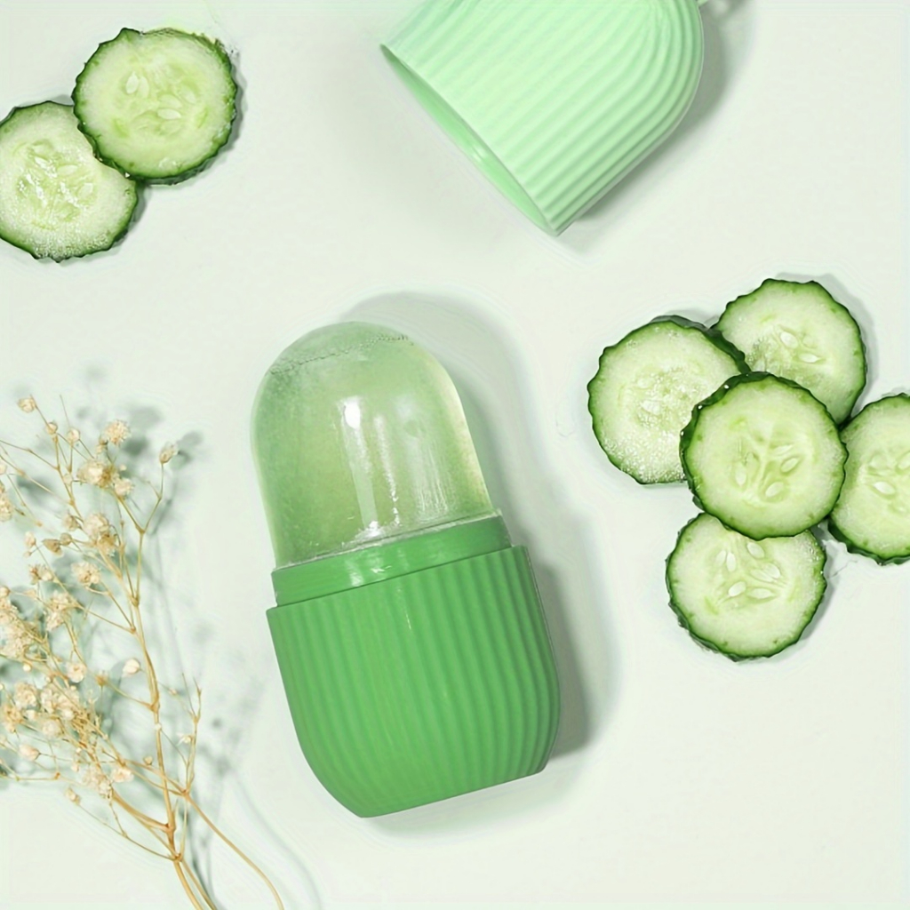 1ชิ้นลูกกลิ้งหน้าน้ําแข็งซิลิโคน,ลูกกลิ้งน้ําแข็งใบหน้าความงาม,ลูกกลิ้งน้ําแข็งสําหรับใบหน้า,ตาและคอ,น้ําแข็งลูกกลิ้งดูแลผิว,ผู้ถือน้ําแข็งสําหรับหน