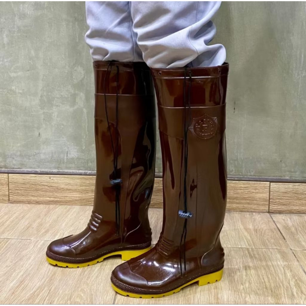 รองเท้าบูท Passat น้ำตาลพื้นเหลือง สูง 18 นิ้ว รองเท้าบูทยางกันน้ำ Passat119A บูทแม่ค้า