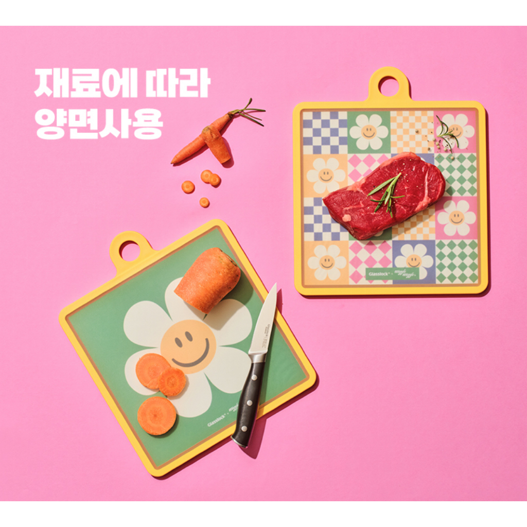 [Glasslock xWiggle Wiggle] DOUBLE-SIDED CUTTING BOARD -Smile We Love