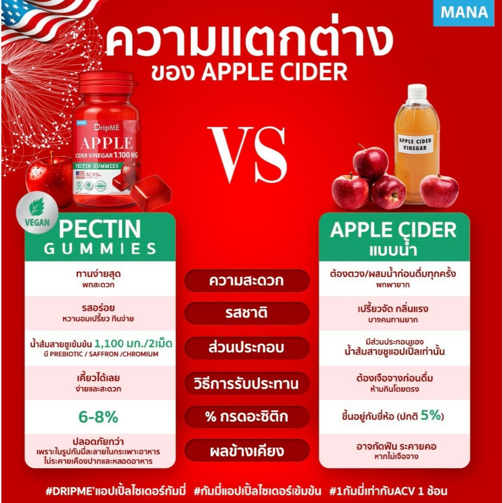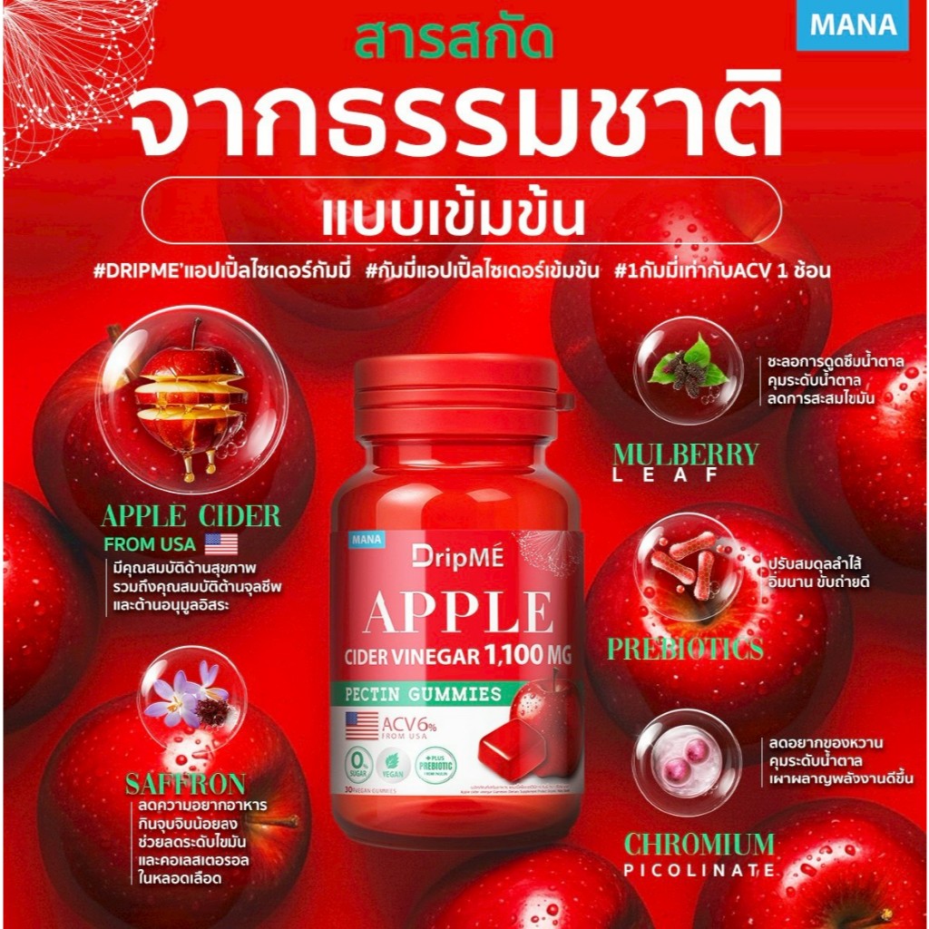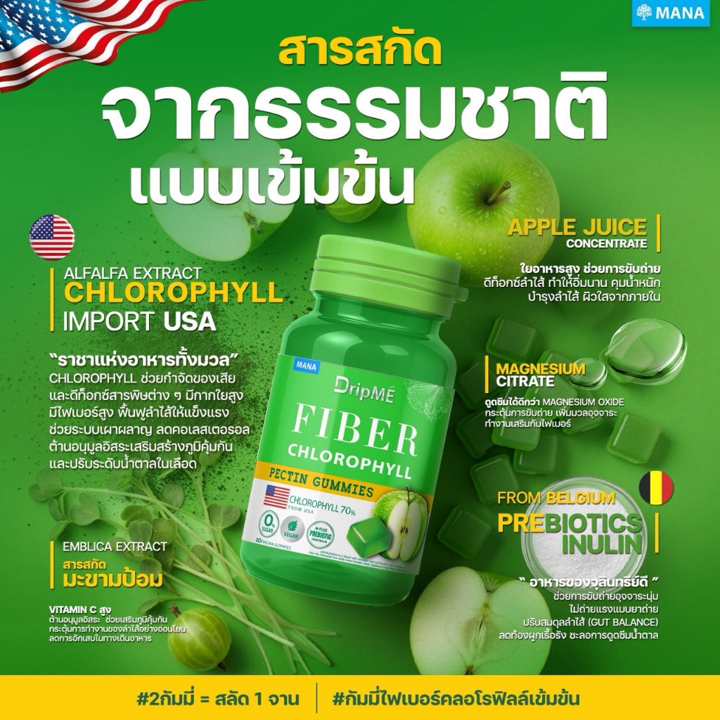 (พร้อมส่ง ของแท้100%) 1แถม1 MANA DripME Gummies (กัมมี่แอปเปิ้ลไซเดอร์เข้มข้น + กัมมี่ไฟเบอร์คลอโรฟิลล์เข้มข้น)