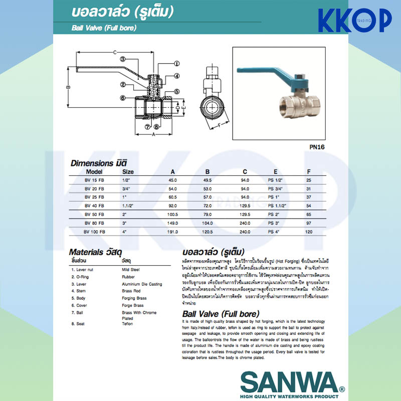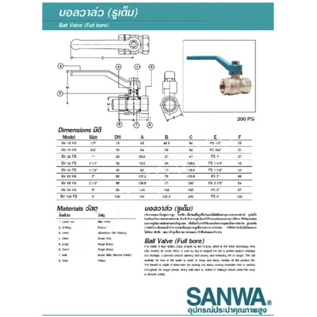บอลวาล์ว บอลวาวล์ ทองเหลืองชุบขาว Ball valve ซันวา SANWA ขนาด 1/2" 3/4" 1" SANWA ซันว่า