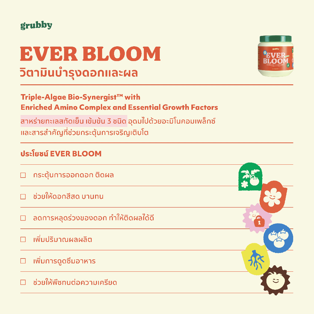 Ever Bloom 250 g I วิตามินบำรุงดอกและผล จากสาหร่ายทะเลสกัดเย็น เข้มข้น 3 ชนิด ช่วยดอกดก ดอกบาน ดอกใหญ่ สมบูรณ์ ลูกใหญ่ ต