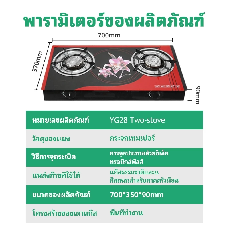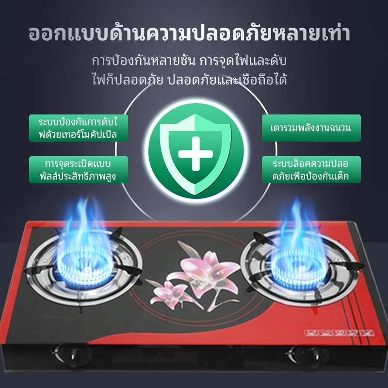 เตาแก๊ส2หัว หน้ากระจกทนความร้อน ระบบอินฟราเรด ใช้ได้ทั้งแก๊สธรรมชาติและLPG พร้อมระบบปลอดภัย กำลังไฟ5.5KW รับประกัน5ปี