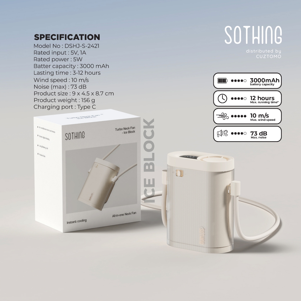 พัดลมเทอร์โบแบบคล้องคอ SOTHING ENGINE ICE BLOCK ลมแรง เย็นจัด แบตอึด ใช้ได้หลากหลาย รับประกัน 1 ปี