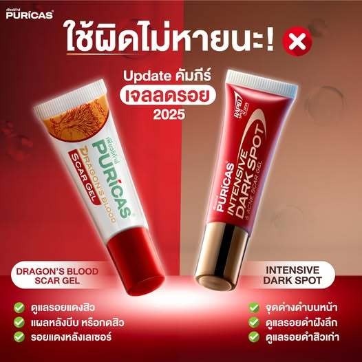 ถูก/แท้/มีไลฟ์ (3g.) เจล Puricas Intensive Dark Spot&Acne Scar Gel/Dragon's Blood Scar Gel เพียวริก้าส์ เจลแต้มสิว ลดรอย