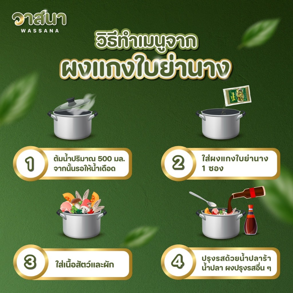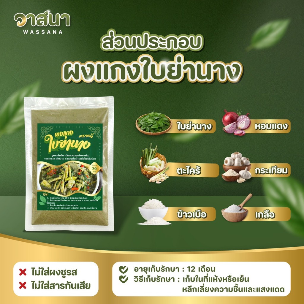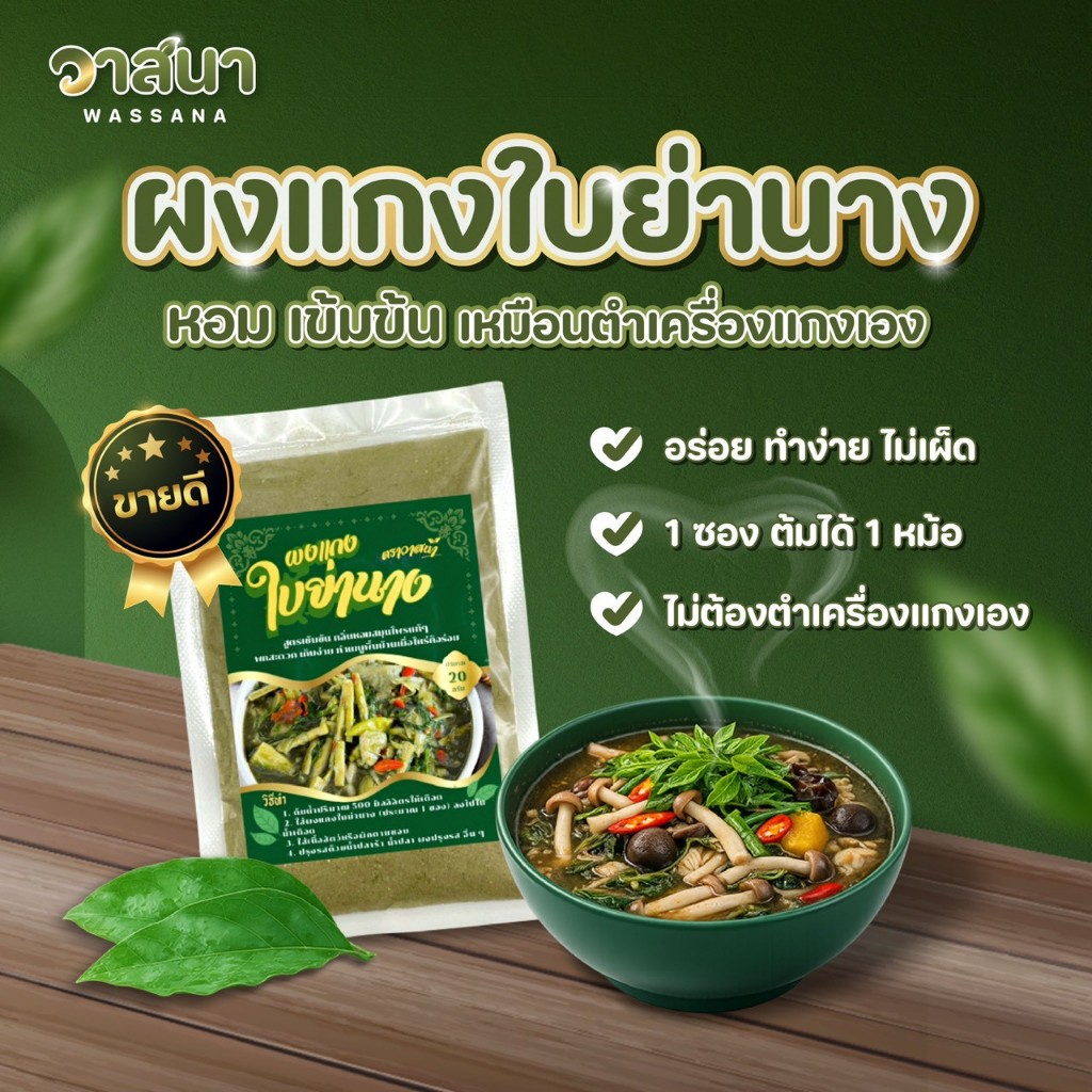 วาสนา ผงแกงใบย่านาง 5 ซอง, 10 ซอง, 15 ซอง แกงเปรอะ แกงเห็ด แกงหน่อไม้ หมกหน่อไม้