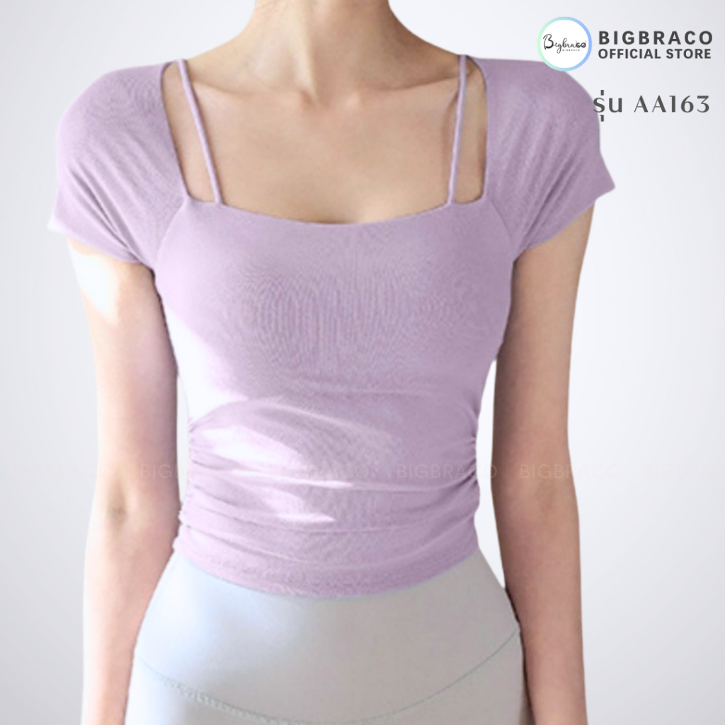 (Plussize S-XL) Bigbraco | AA163 - เสื้อออกกำลังกายพิลาทิส ชุดโยคะ ชุดพิลาทิส ทรงตัวยาวเต็มตัว เนื้อผ้านุ่ม มีฟองน้ำ
