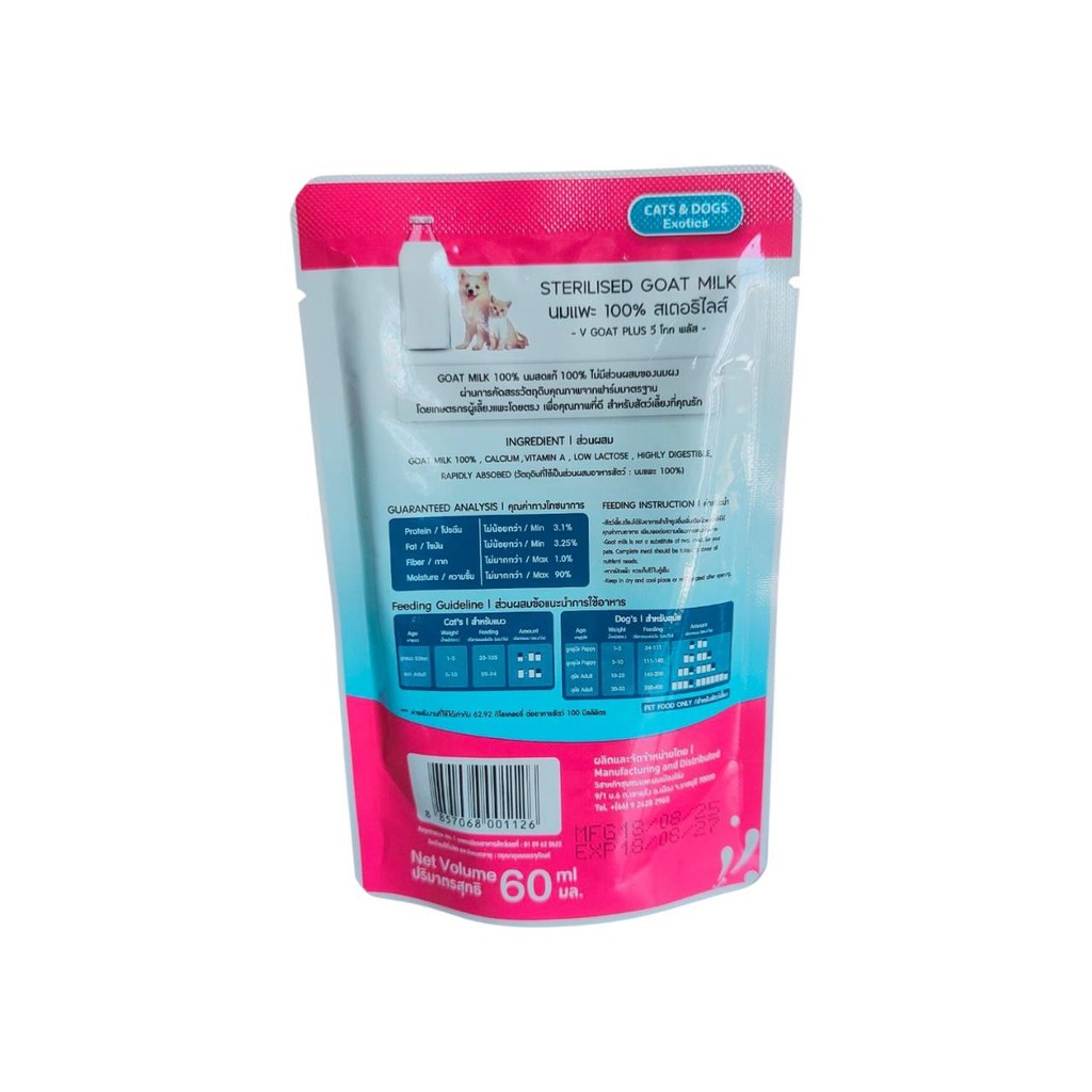 12 ซอง V Goat Plus 60 mL นมแพะสด สำหรับ ลูกสุนัข ลูกแมว