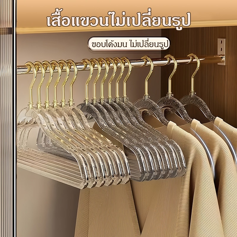 [1แถม1] ไม้แขวนเสื้อลายกลิตเตอร์ ไม้แขวนพลาสติกแบบใส กันลื่น ประดับลายกลิตเตอร์ สีสันสดใส ขนาด ได้10ชิ้น COD