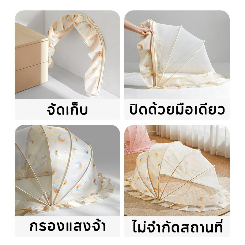 มุ้งครอบกันยุงแบบพกพา มุ้งครอบเด็กอ่อน มุ้งกันยุงสำหรับเด็กมีม่านบังแสง มุ้งพับได้ ป้องกัน 360° หมีน้อยน่ารัก/กระต่าย
