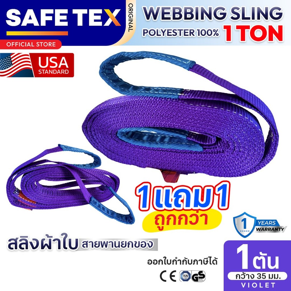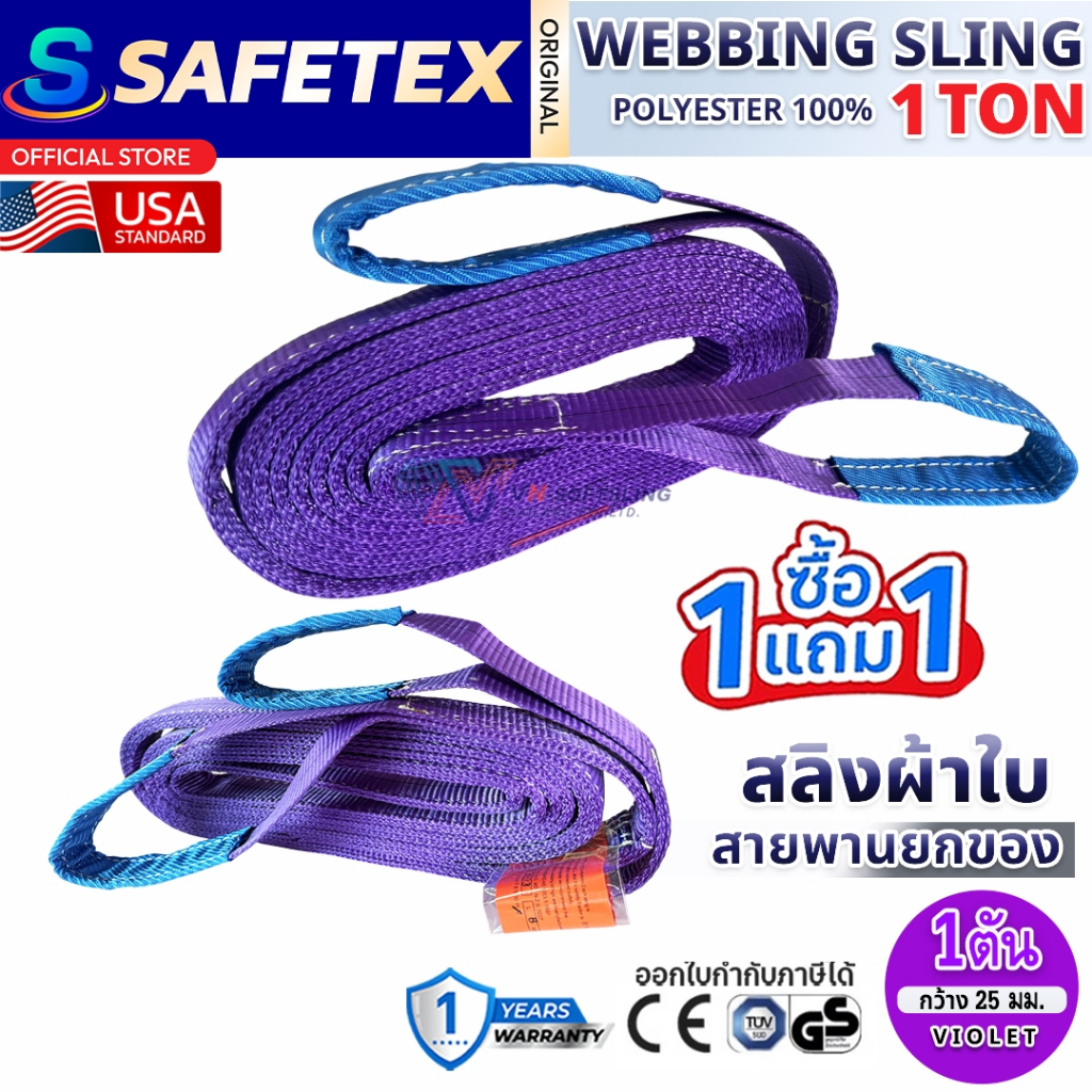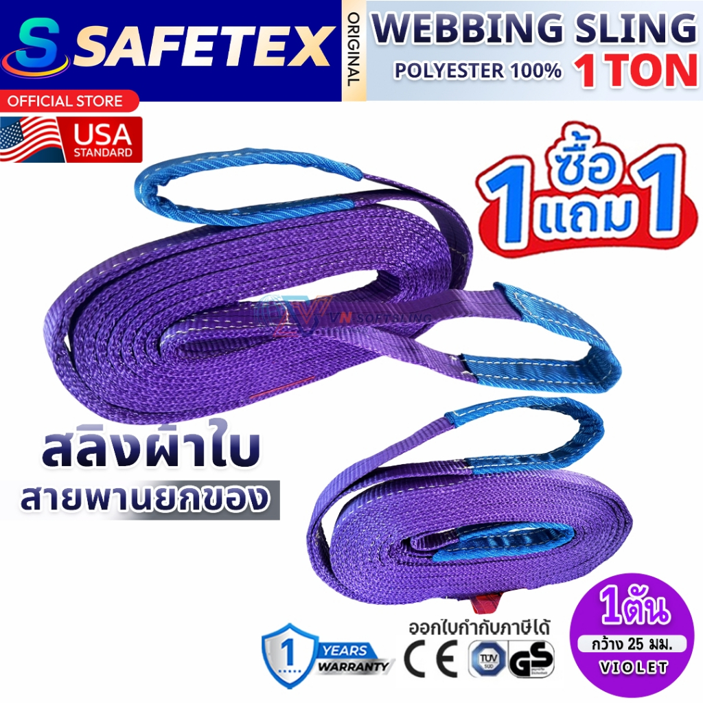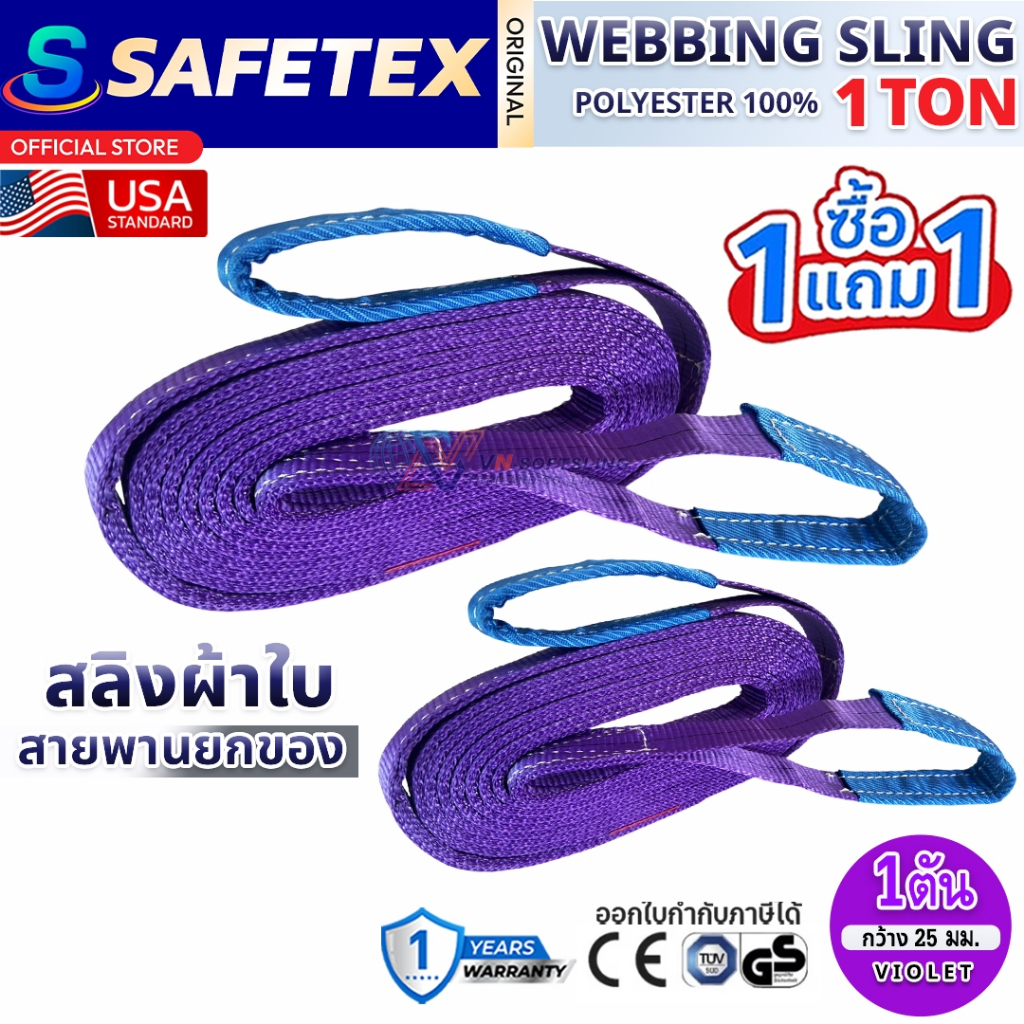 (1แถม1) สายพานยกของ 1 ตัน SAFETEX USA แท้ สลิงผ้าใบ สลิงอ่อน สลิงแบน สลิงโพลีเอสเตอร์ 100%