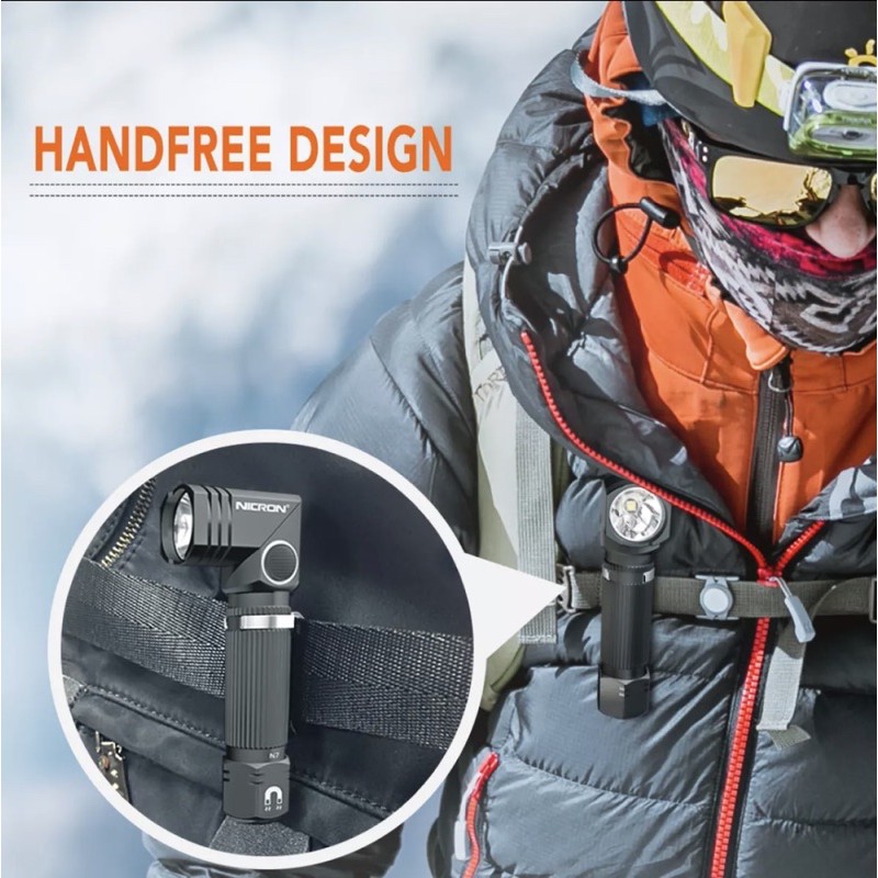 ไฟฉาย LED เอนกประสงค์ NICRON N7 (B74e) 600ลูเมน (📌แถมถ่าน14500🔋) แฮนด์ฟรี Dual หมุนได้ 90° ท้ายแม่เหล็ก