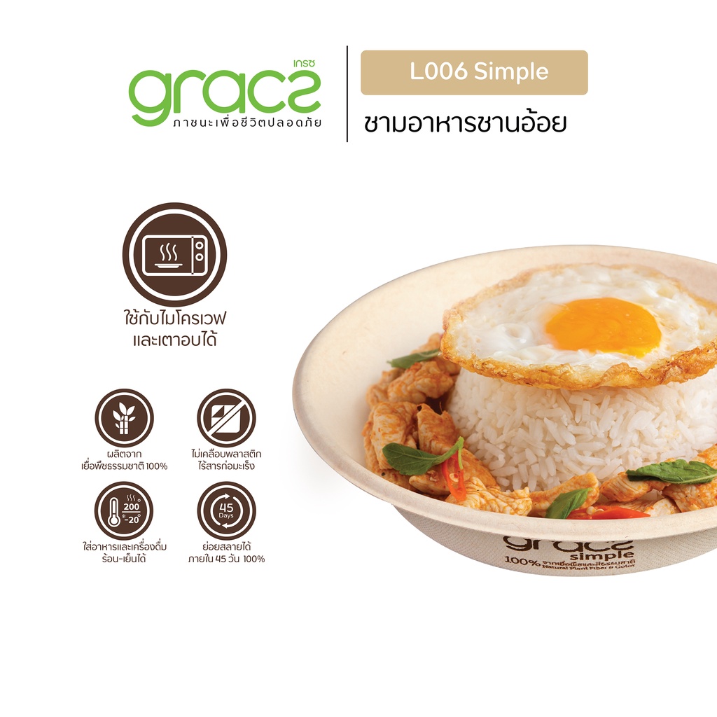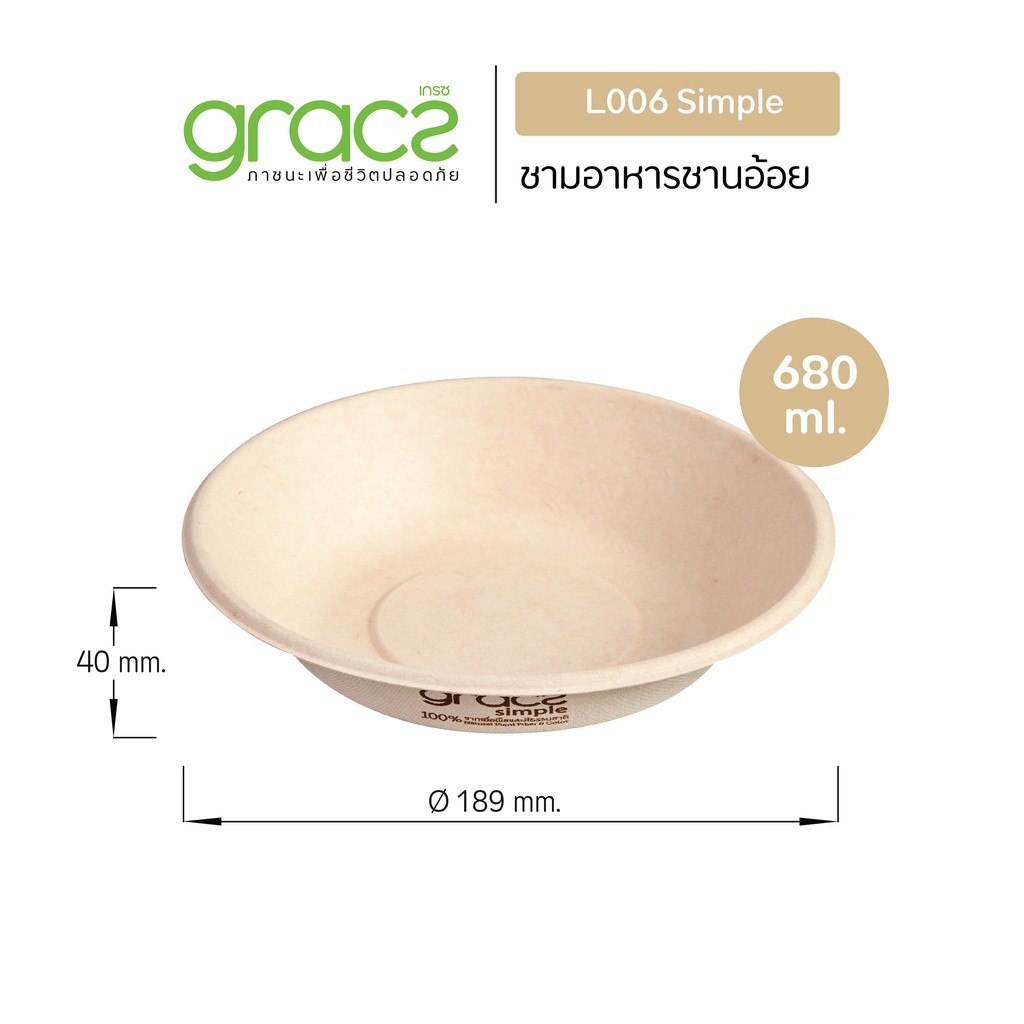 GRACZ ชามอาหาร 680 มล.รุ่น L006 (แพ็ก 50 ชิ้น)(เกรซ ซิมเปิล)ชามกระดาษ ถ้วยกระดาษ ชานอ้อย ย่อยสลายได้
