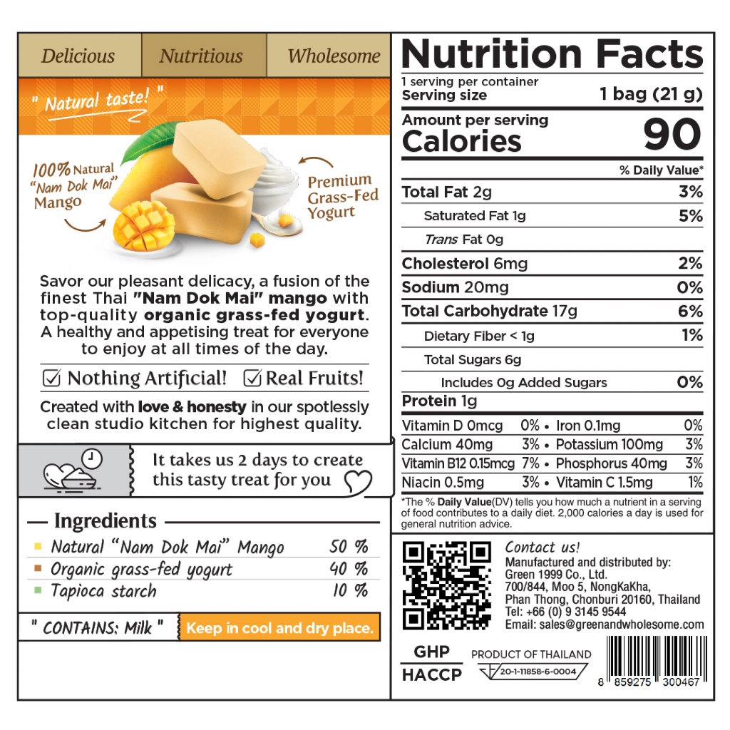 Green & Wholesome l Mango with Natural Yogurt Freeze dired l มะม่วงผสมโยเกิร์ตธรรมชาติฟรีซดราย