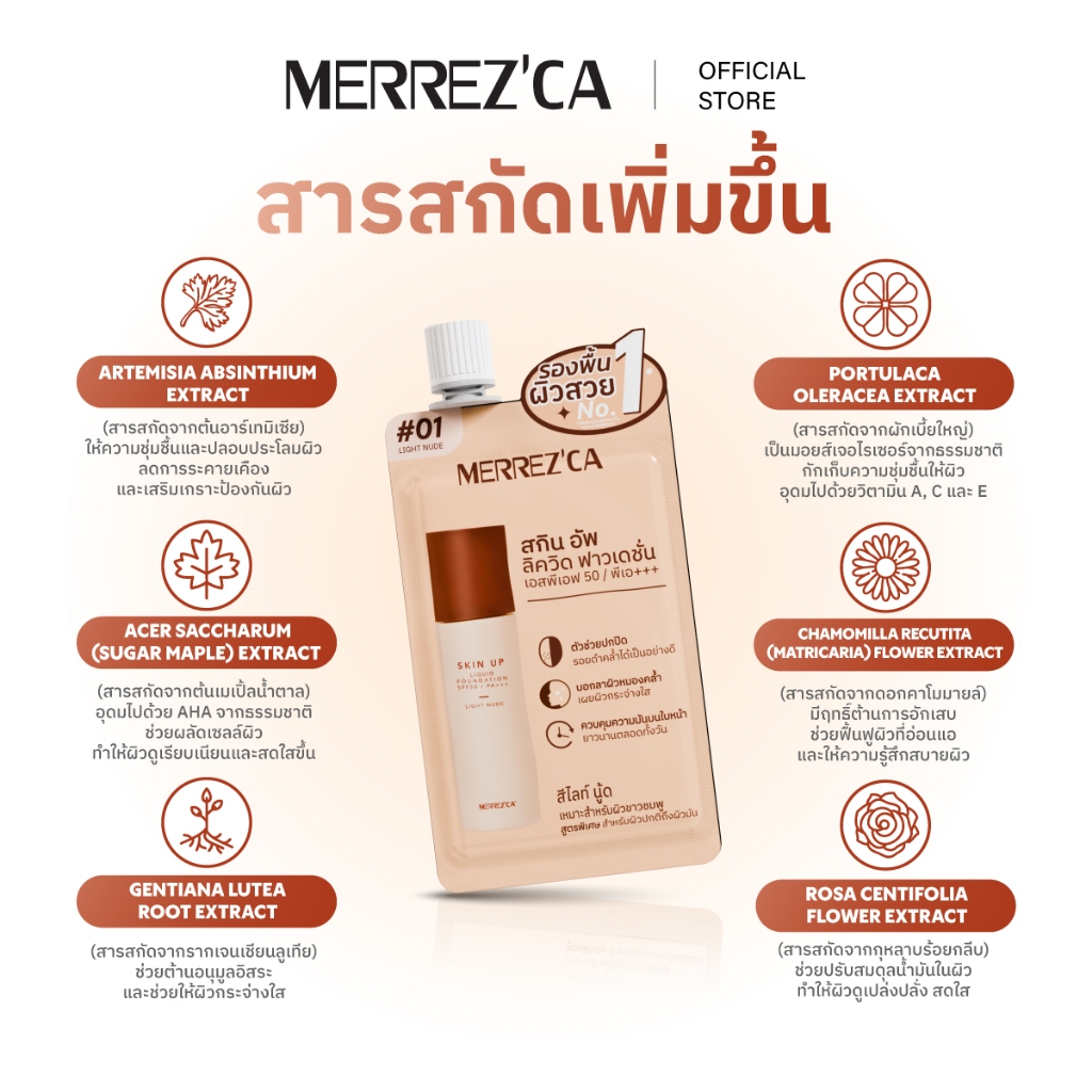 ( 1&3 ซอง ) Merrezca Skin up liquid foundation- Sachet รองพื้นสูตรน้ำ เนื้อแมตกลบมิดทุกปัญหาผิว