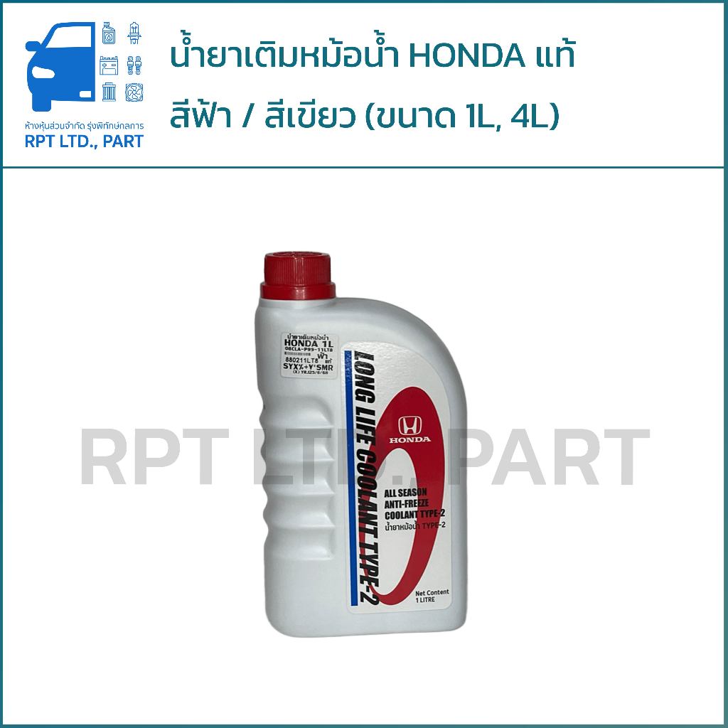 น้ำยาเติมหม้อน้ำ HONDA แท้ สีเขียว/สีฟ้า (1ลิตร / 4ลิตร)