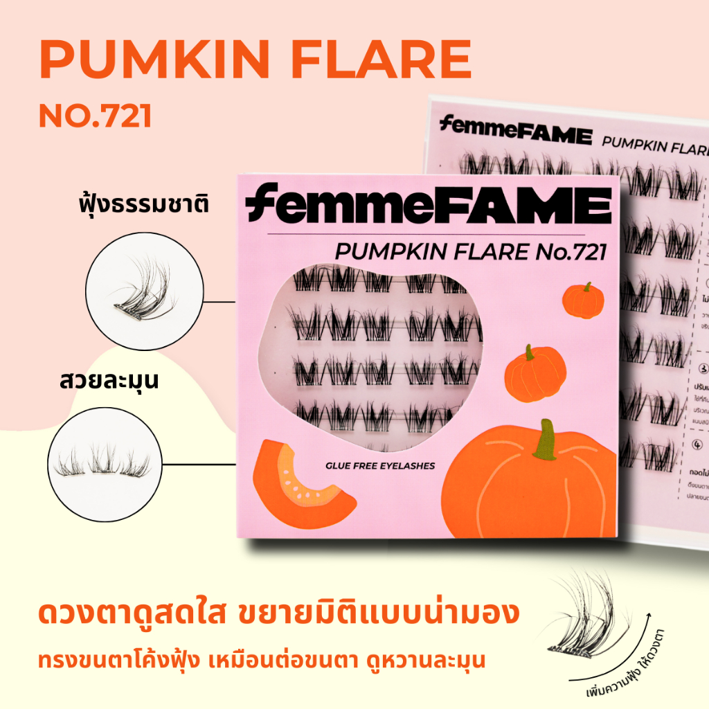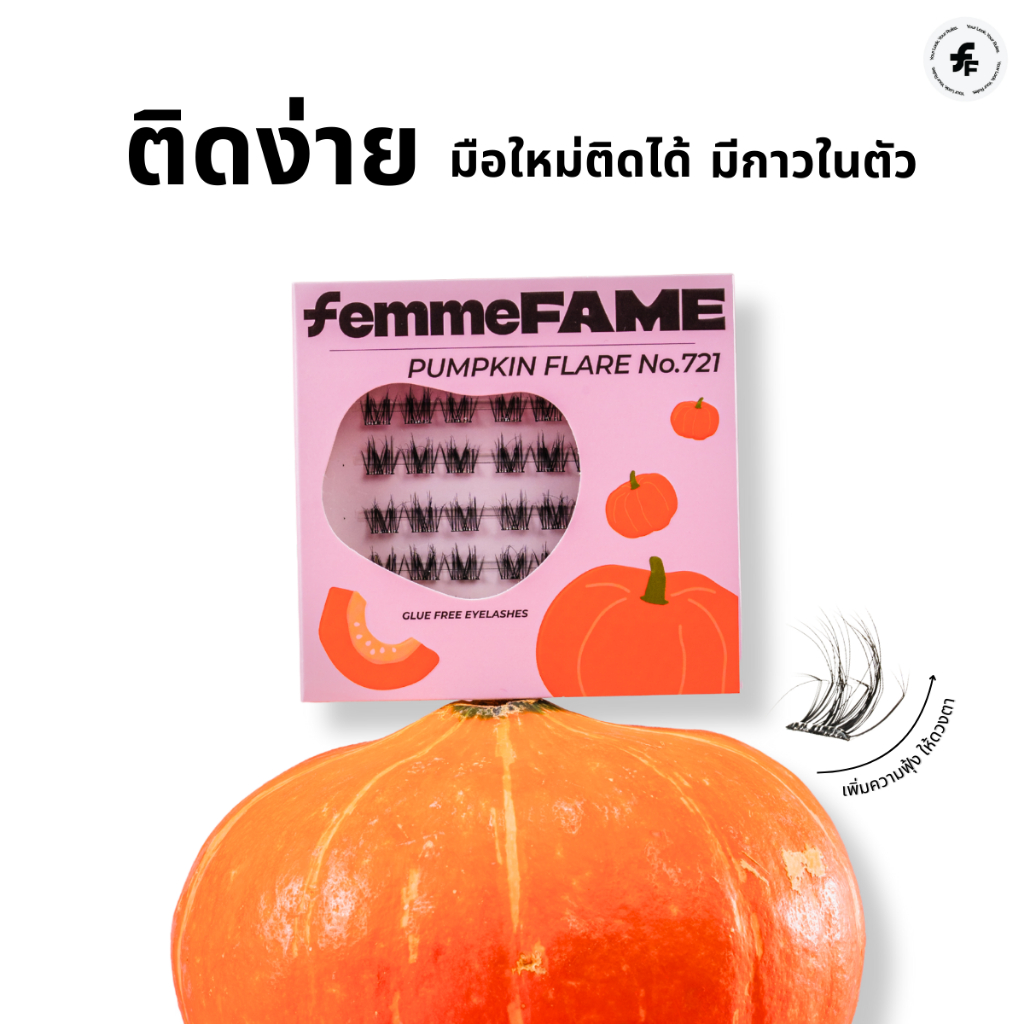 [ร้านไทย] FemmeFame ขนตาปลอมมีกาวในตัว รุ่น Pumkin Flare No.721 ฟักทอง - แถมแหนบคีบทุกกล่อง