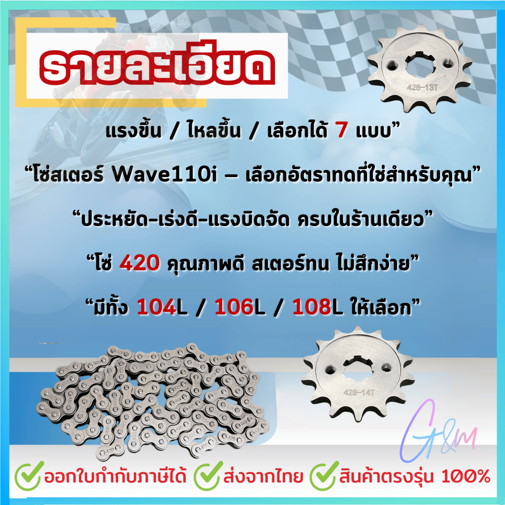 ชุดโซ่สเตอร์/420 สำหรับ เวฟ110i 125i supercup ได้ครบชุด3ชิ้น สเตอร์หน้า+หลัง+โซ่ WAVE110i / WAVE125S / WAVE125R / WAVE