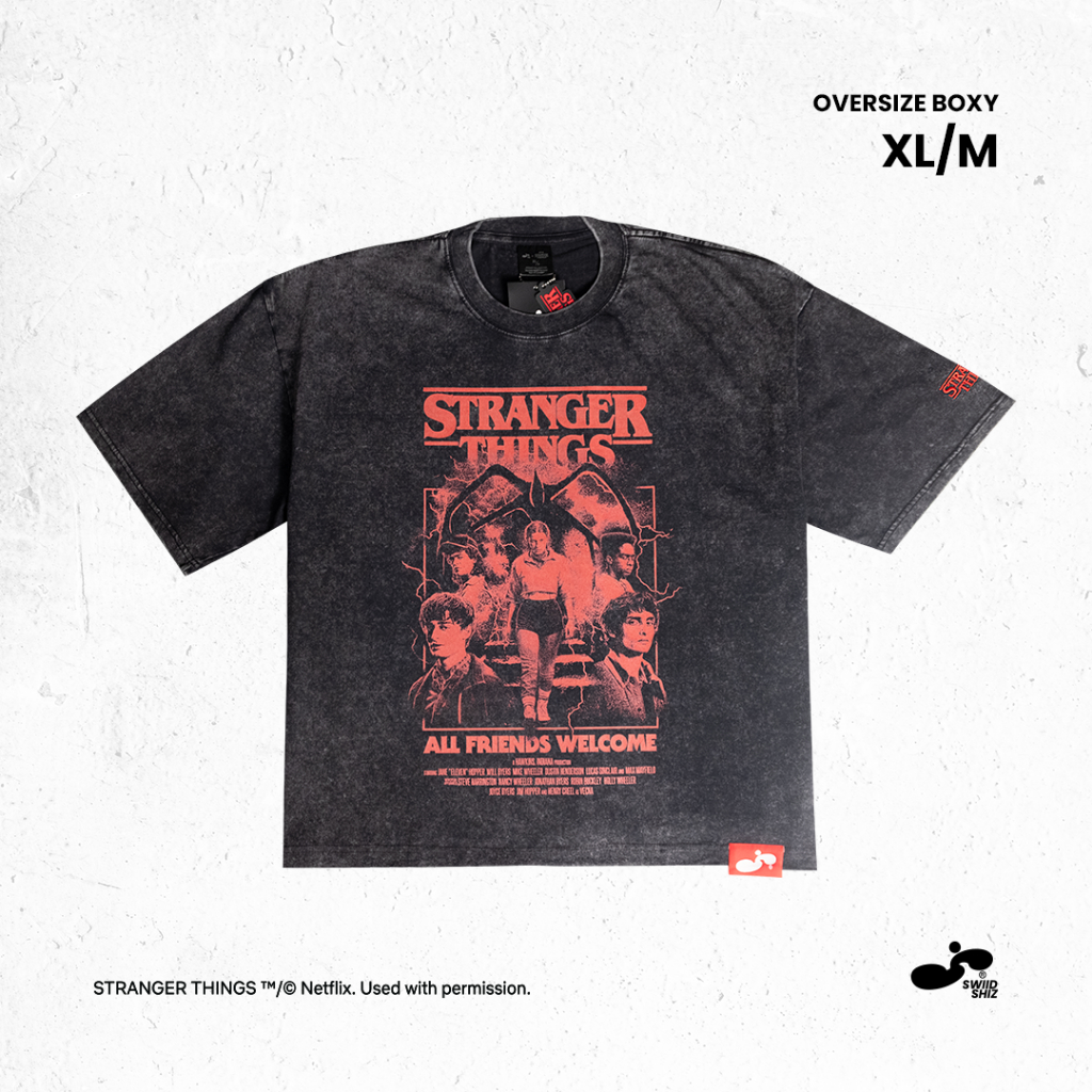 [พร้อมส่ง] Stranger Things Oversize Boxy T-Shirt 01 Faded Black (size : XL/M)