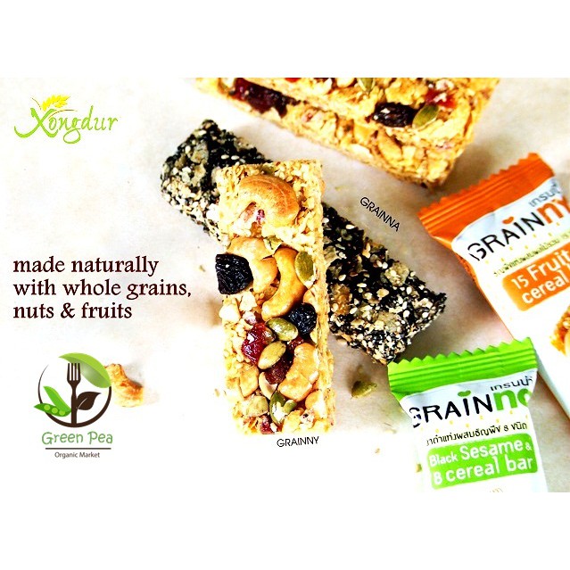 Xongdur เกรนนี่ ขนมธัญพืชแท่งผสมผลไม้รวม [แพค5แท่ง] Organic Grainny Fruit cerea