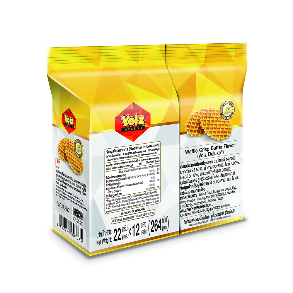 Voiz Waffle Crisp Butter วอยซ์ วาฟฟิลคริสป์กลิ่นบัตเตอร์ 22 กรัม 12 ซอง