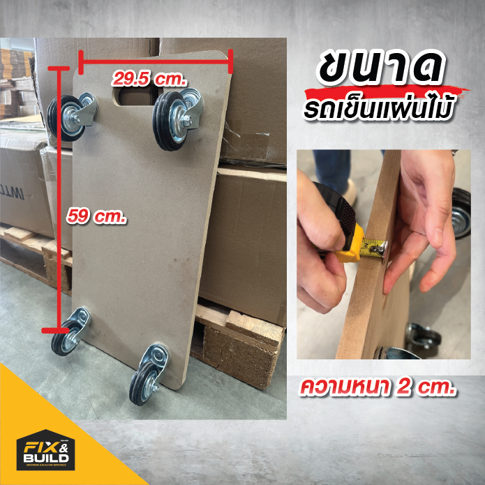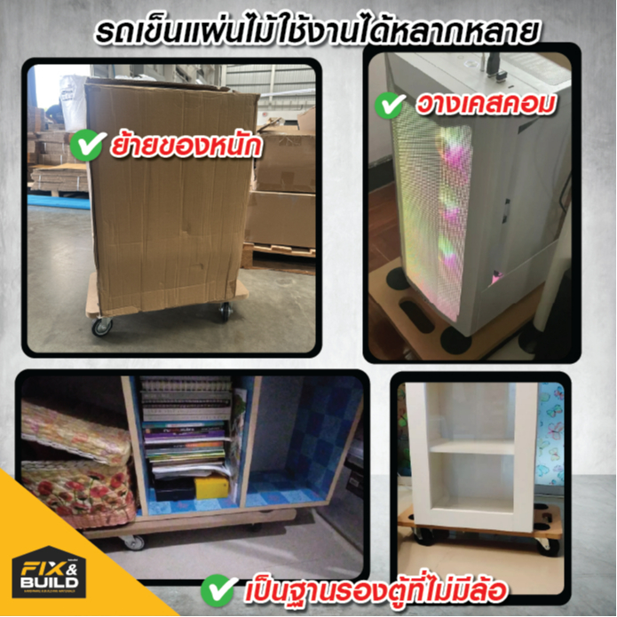 รถเข็นของ รถเข็นแบบแผ่นไม้ Fix&Build (มาใหม่) ตัวช่วยยกของหนัก ย้ายของ วางเคสคอม เก็บง่าย รับน้ำหนักได้ 100 Kg.