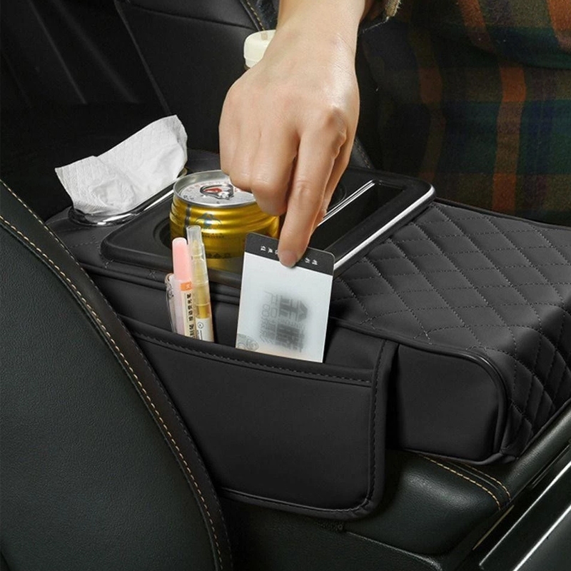 MOTUS 4in 1 ที่เท้าแขนรถกล่องเก็บคอนโซลกลางรถOrganizerพร้อมที่วางแก้วกล่องกระดาษทิชชูUniversal PUหนังที่วางแขนPad