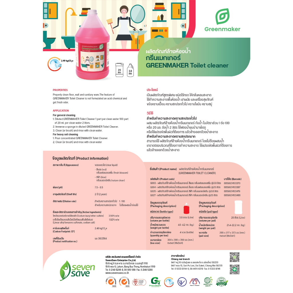 ล้างห้องน้ำ กรีนเมกเกอร์ กลิ่นเมลโล่เฟรช I ไม่มีส่วนผสมของกรด I 3.8 ลิตร
