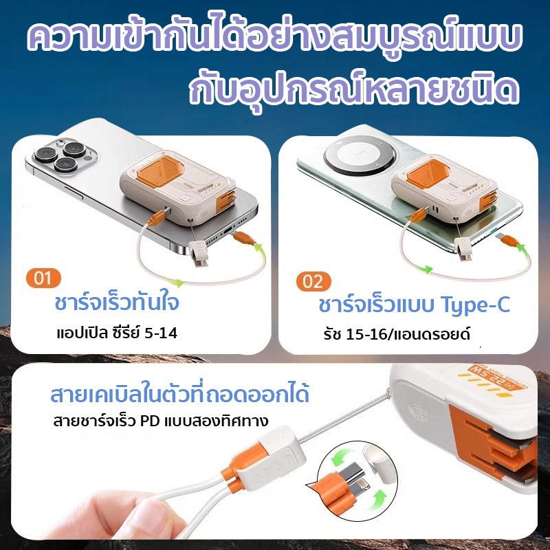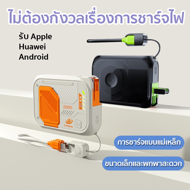 Powerbank 50000mAh แบตสำรองไร้สาย พาวเวอร์แบงค์ชาร์จเร็ว Fast Charge PD35W ถอดสายชาร์จไฟ มีสายในตัว ปลั๊กในตัว