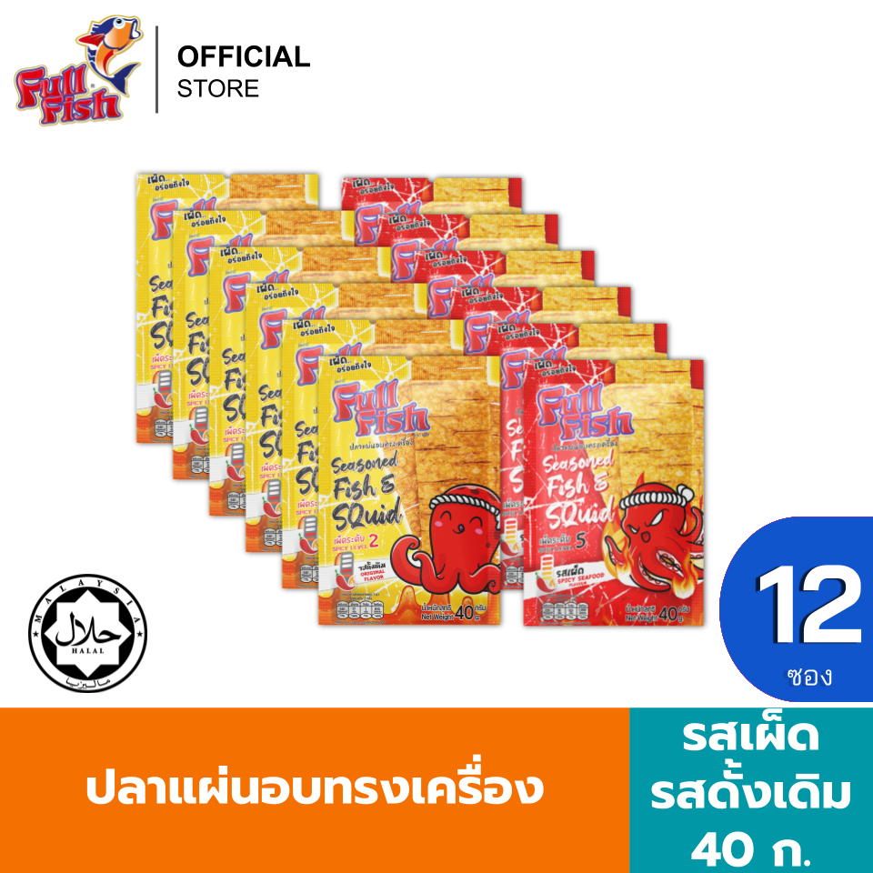(แพ็ค 12) FullFish ปลาแผ่นอบทรงเครื่อง ขนาด 40 กรัม มีให้เลือก 2 รสชาติ (รสดั้งเดิม, รสเผ็ด)