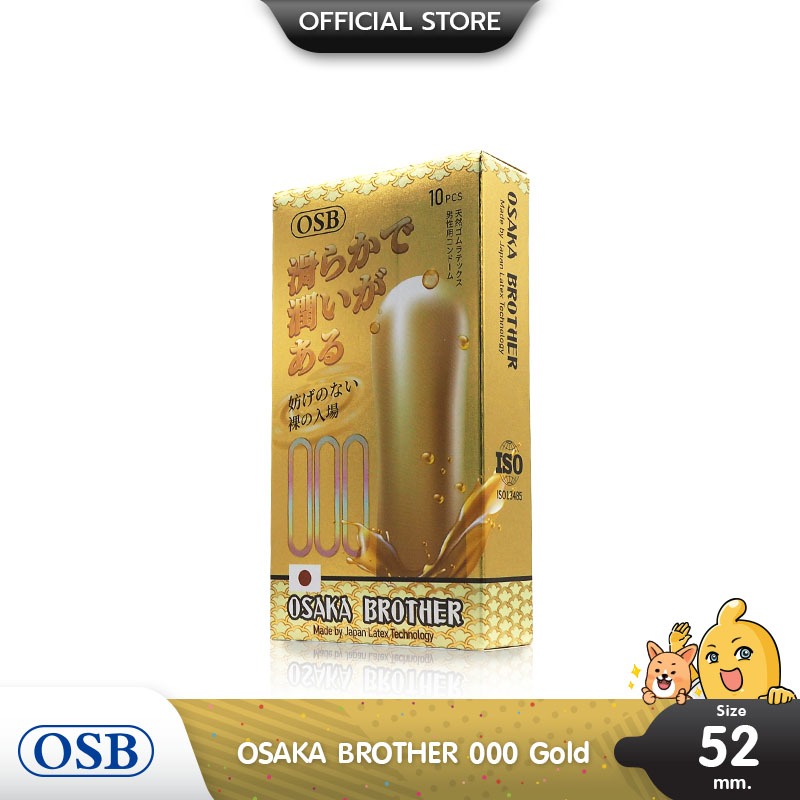 OSAKA BROTHER 000 GOLD ถุงยางอนามัย บางพิเศษ ผิวเรียบ ฟิตกระชับ ขนาด 52 mm. (1 กล่อง) มี 10 ชิ้น