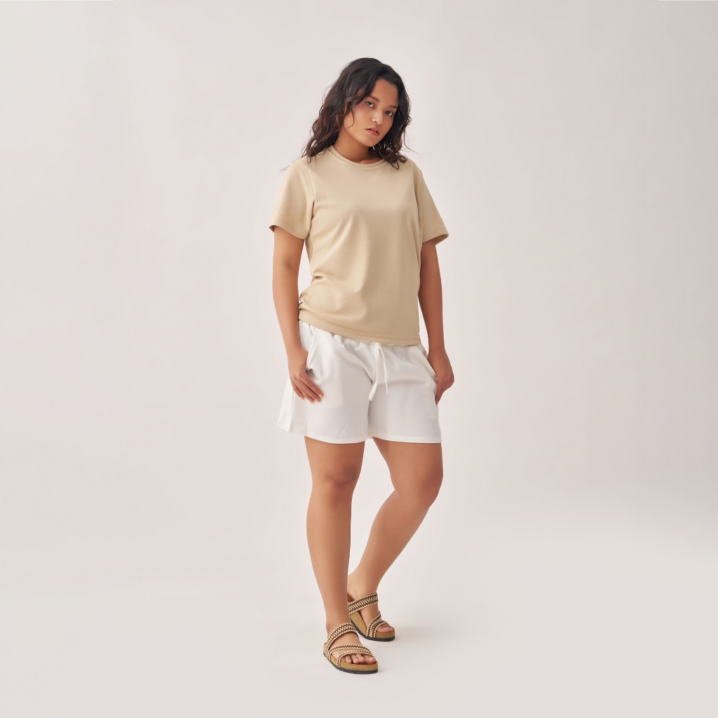 เสื้อไม่ร้อน คอกลม ผู้หญิง Mynds ผ้า Dry-Tech ที่สุดแห่งความใส่สบาย ระบายอากาศดี สีข้าวโอ๊ต