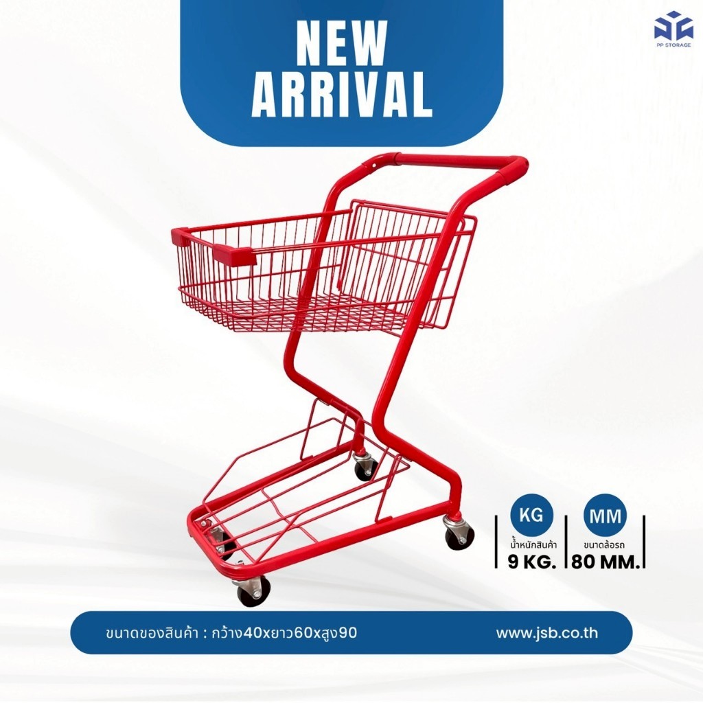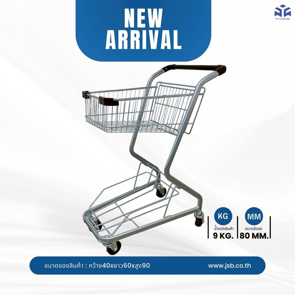 รถเข็นช้อปปิ้ง 2 ชั้น รถเข็นของแบบมีล้อตะกร้าซื้อแยกสินค้ามี3สีสีดำสีแดงสีเงินล้อแข็งแรงออกใบกำกับได้