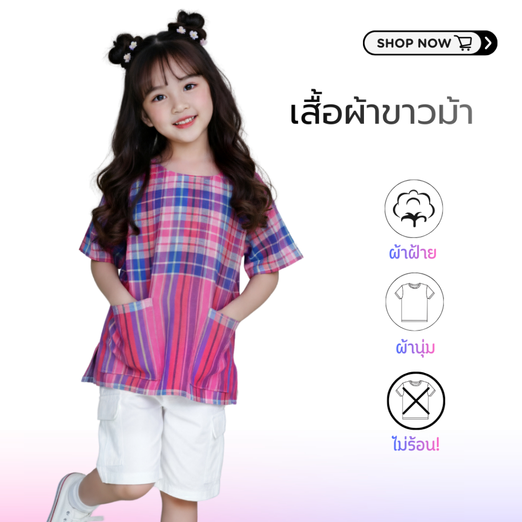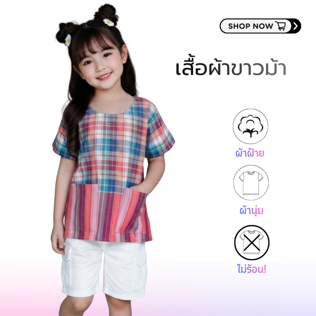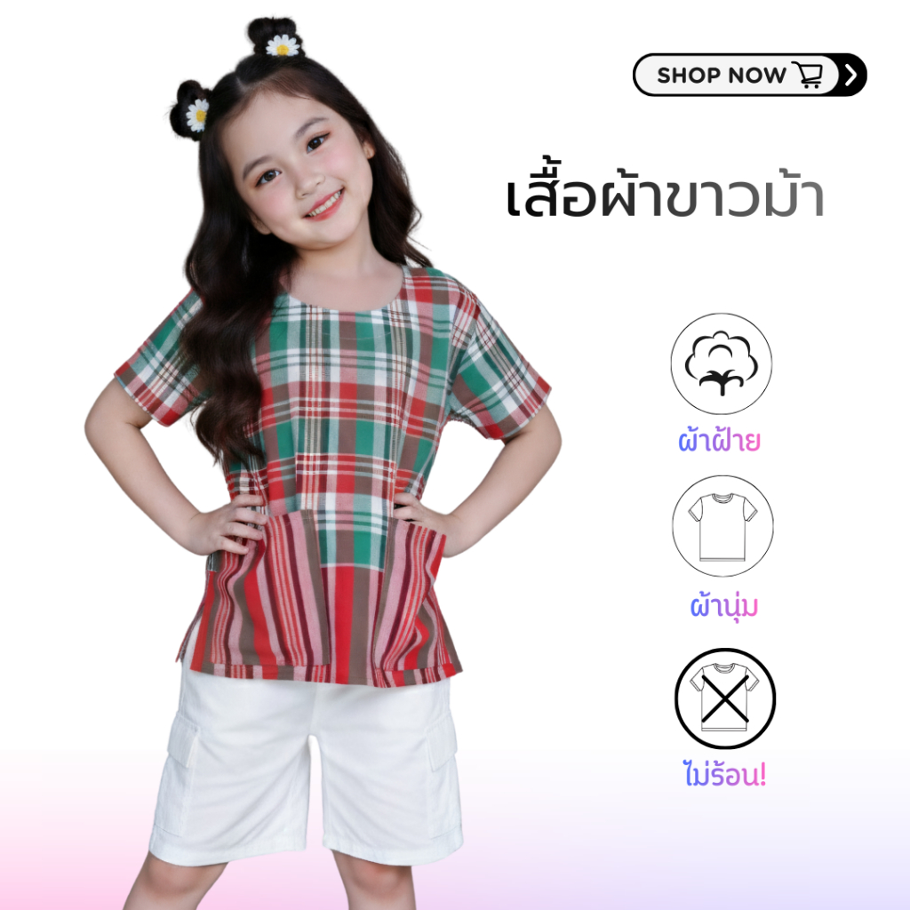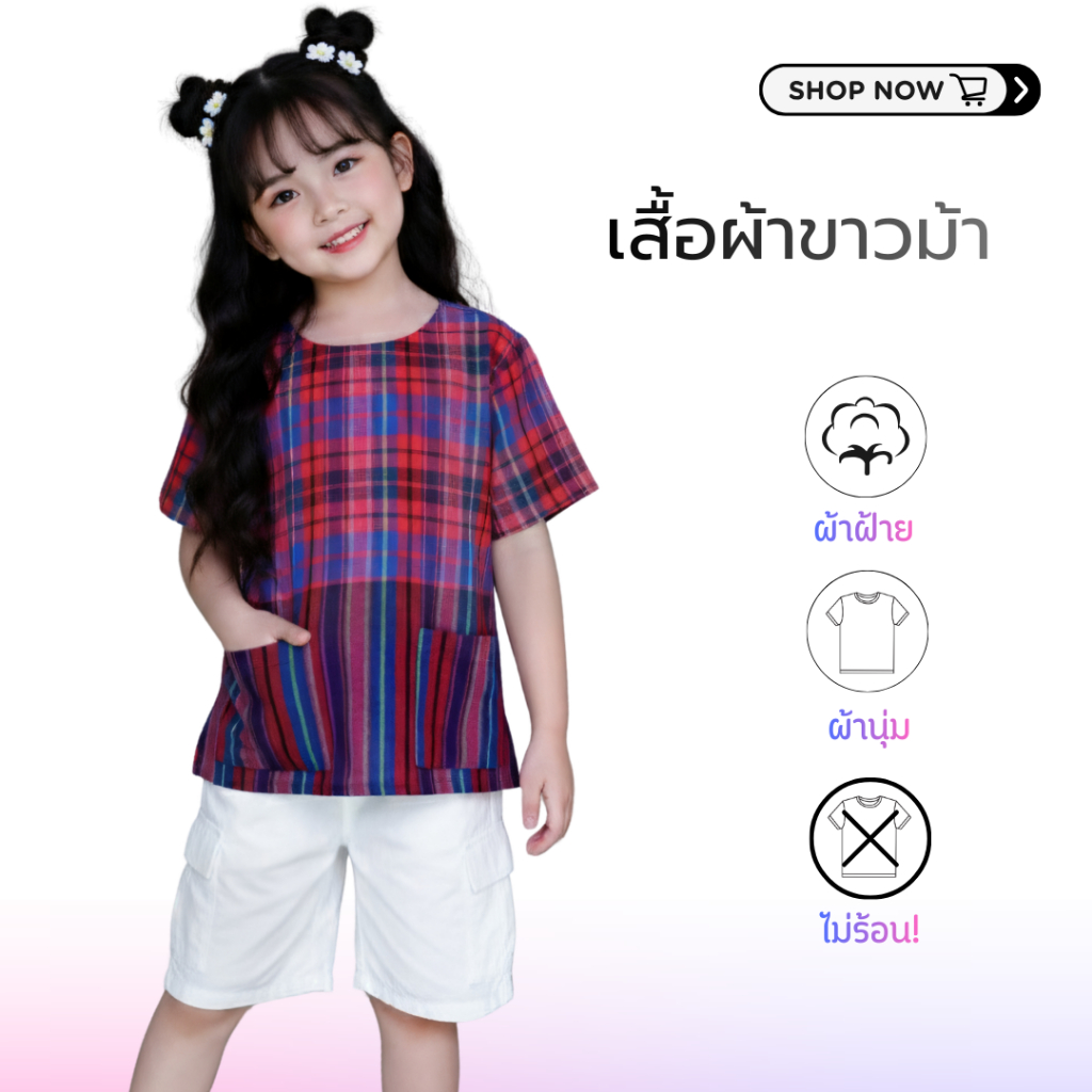 ชุดพื้นเมืองผ้าขาวม้า(คอกลม) เด็กน่ารักใส่สบาย