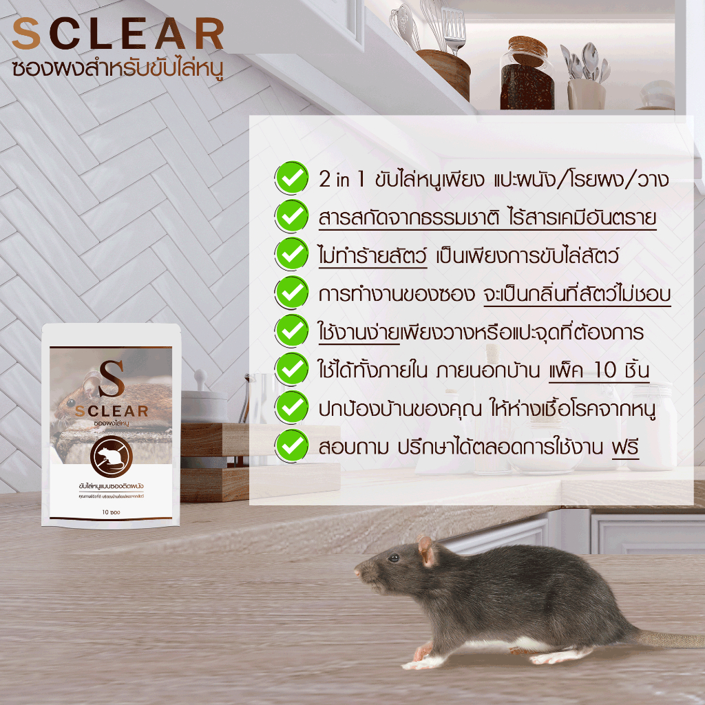 ซองผงขับไล่หนู กวนใจ ขับไล่หนูเพียงแปะ
