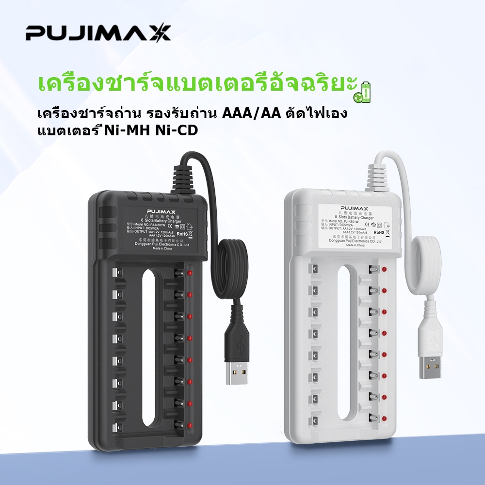 PUJIMAX เครื่องชาร์จถ่าน 8ช่อง ชาร์จเร็ว ปลอดภัย จอ LED รองรับ 1.2V AAA/AA Ni-MH ป้องกันชาร์จเกิน