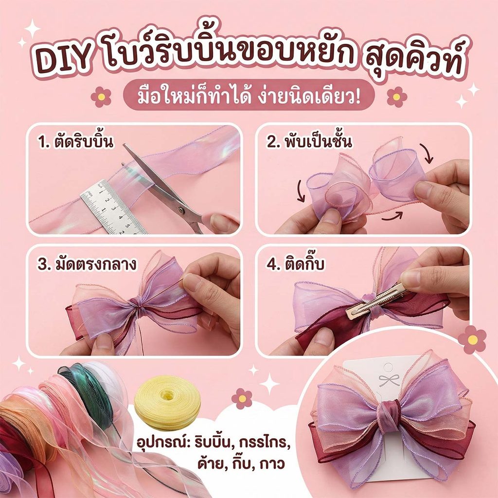 St.kunkka 40มม.ริบบิ้นผ้าโปร่ง 1ม. ริบบิ้นคลื่น ริบบิ้นผ้าแก้ว หน้ากว้าง DIY ริบบิ้นตกแต่งเค้ก