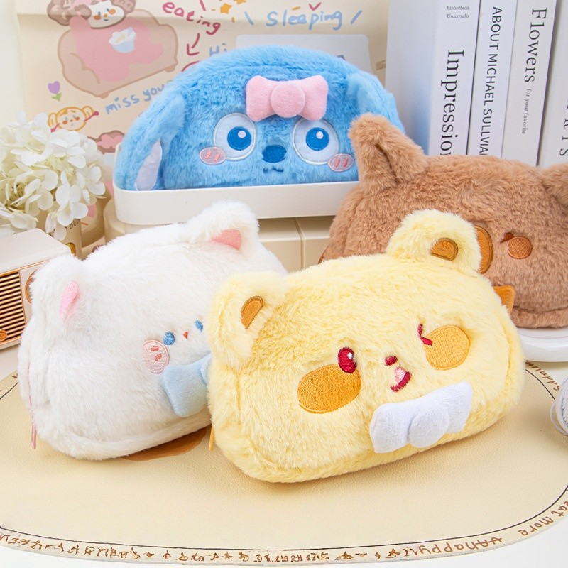 กระเป๋าดินสอ ตุ๊กตาขนนุ่ม น่ารัก ตัวการ์ตูน ขนดก มีความจุมาก กระเป๋าเครื่องเขียน