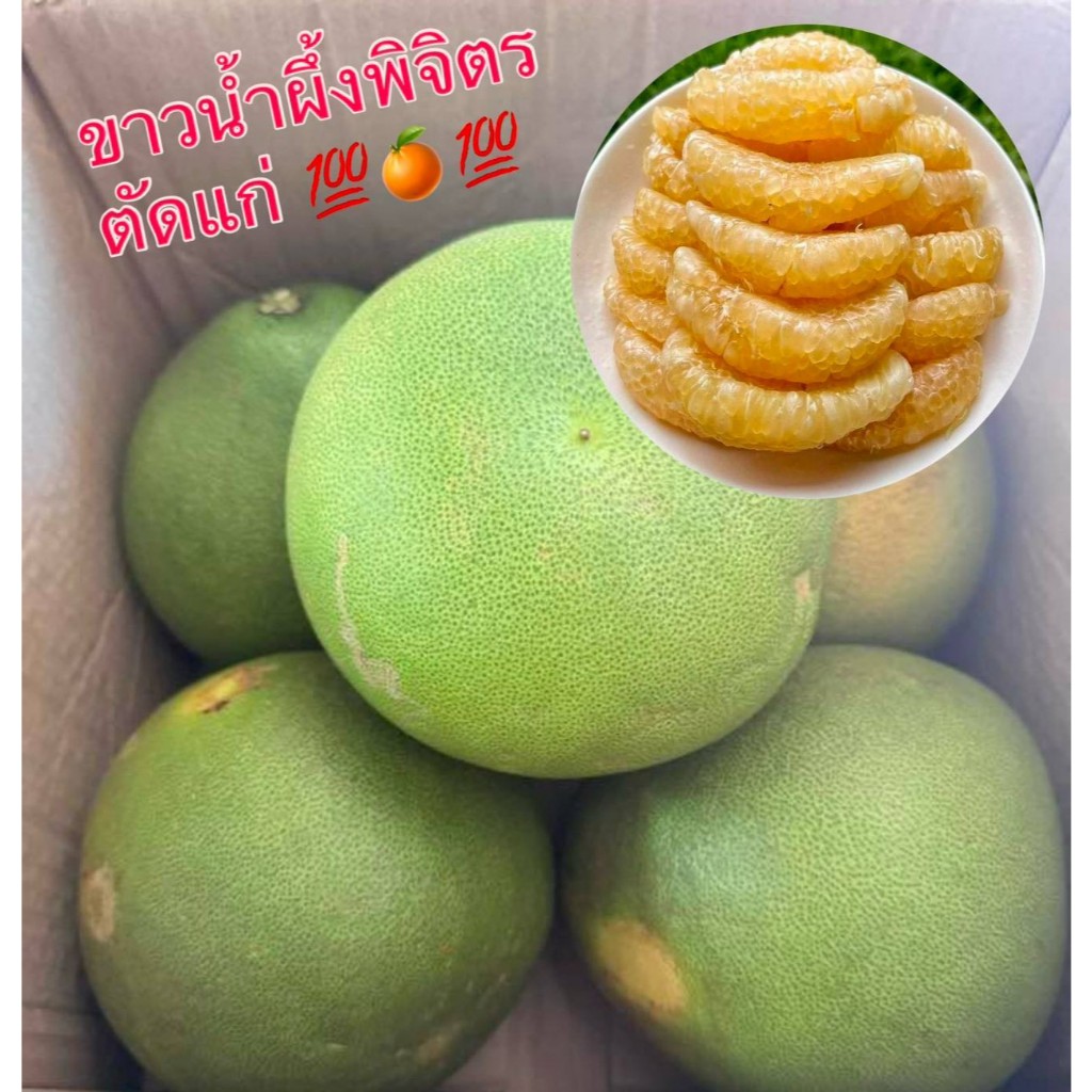 [ 1 ลูก ] ส้มโอขาวน้ำผึ้ง น้ำหนัก 0.8-1.2 ต่อลูก ส้มโอสด ผลไม้สด เนื้อแน่น หวาน ไม่ขม พร้อมส่ง