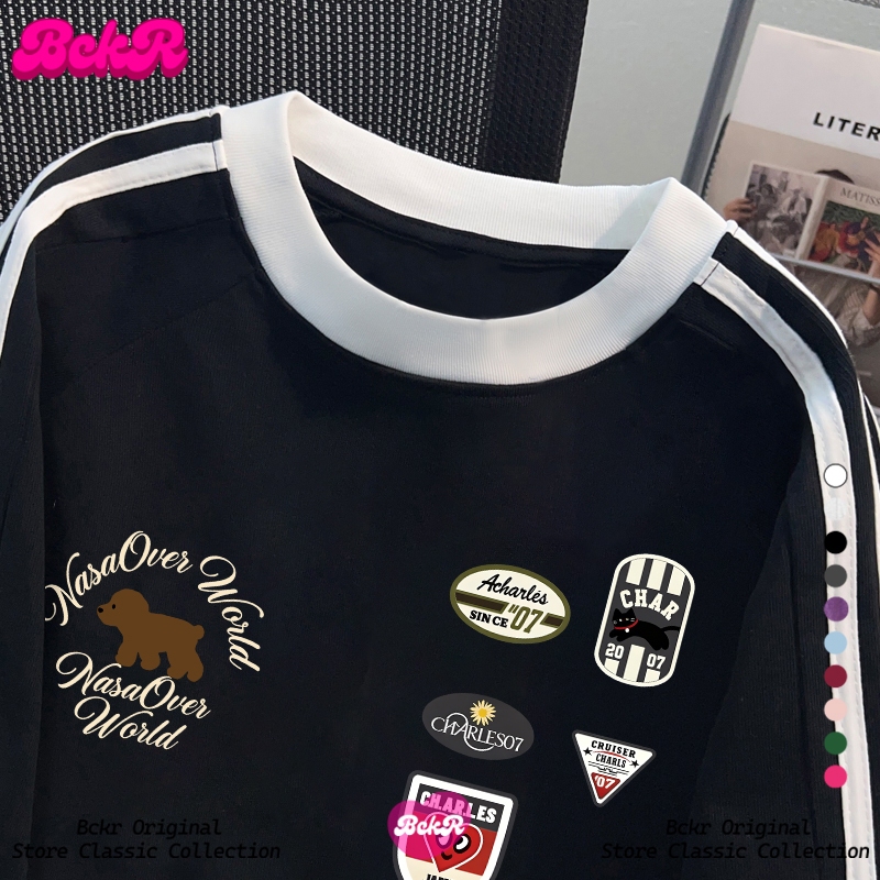 【จัดส่งตลอด 24 ชั่วโมง】🔥BCKR ลายสามแถบ สไตล์พรีพี ดีไซน์เก๋ เสื้อผญ เสื้🐕oversize คอกลม เสื้อYG5014