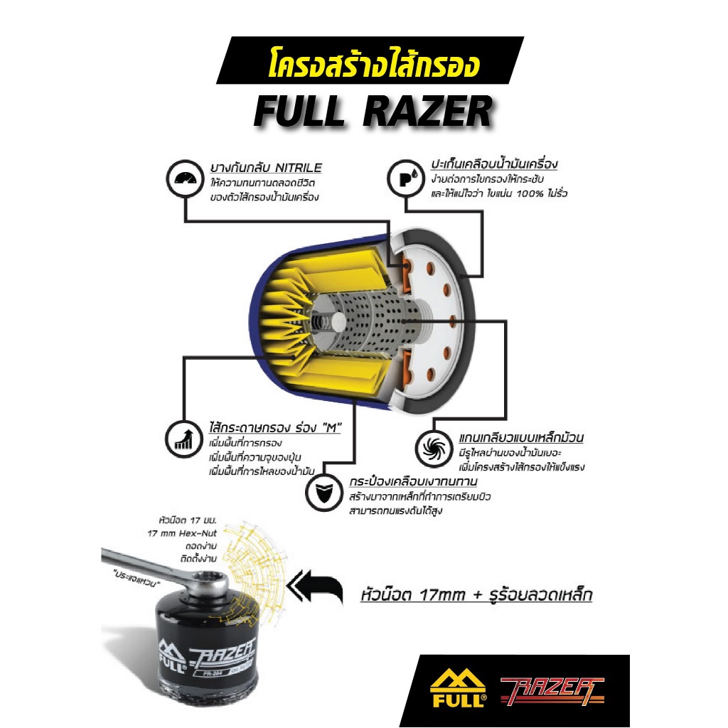 FR-164 กรองน้ำมันเครื่อง FULL RAZER สำหรับ BMW R Nine T R1200 F800GS K1600 S1000RR S1000R HP4 S1000XR C400 C650GT F750