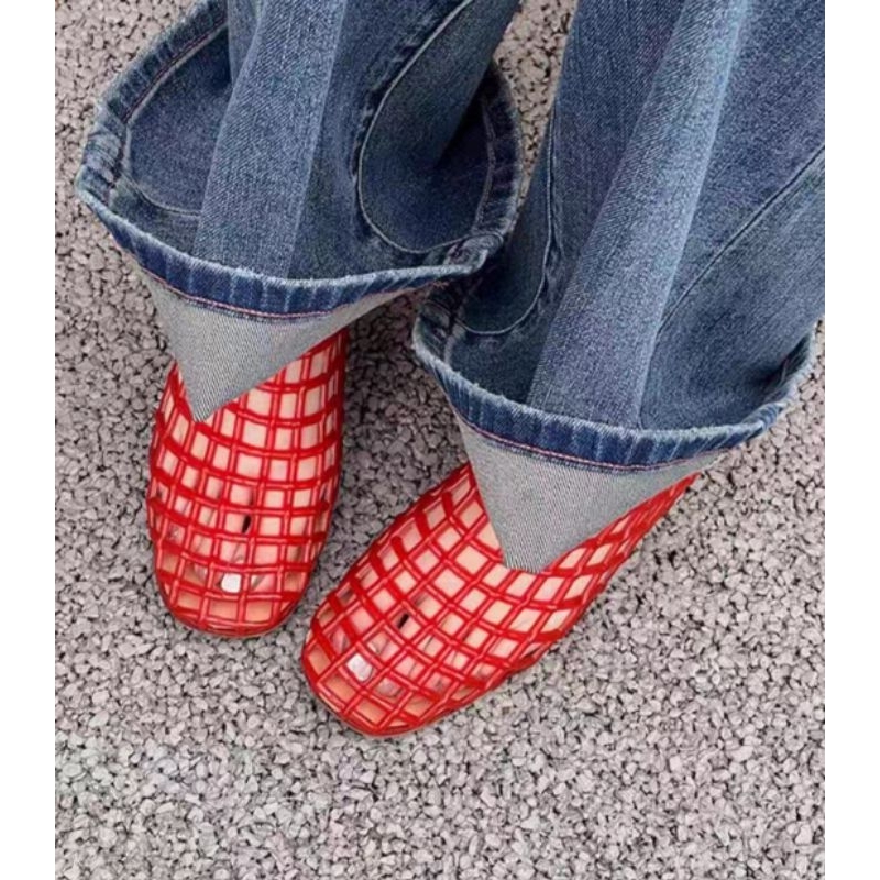 Jelly Flats Mesh Ballet Flatsน้ำหนักเบา ระบายอากาศได้ดี พื้นนิ่มเบาลุยน้ำได้สะบาย