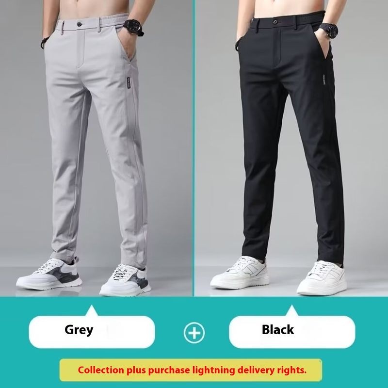 Hillsayn กางเกงขายาวผู้ชาย เนินเขา ผู้ชายผ้าไหมน้ําแข็งกางเกงสันทนาการบางตรงกางเกงกีฬาเอวยางยืดบาง