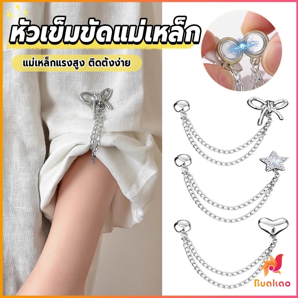 Buakao 1 ชิ้น คลิปเข็มกลัดติดแขนเสื้อ ยึดขากางเกง แบบแม่เหล็กในการยึดติด Magnetic buckle