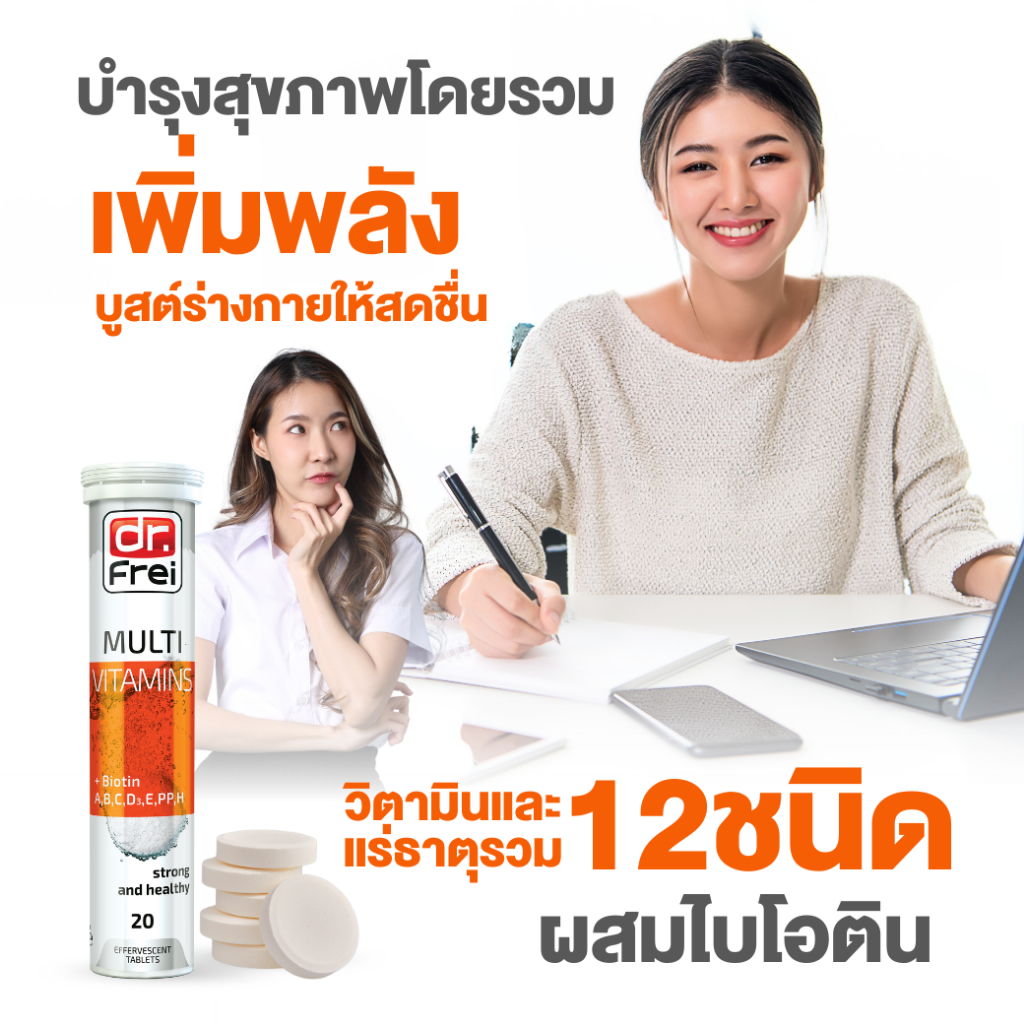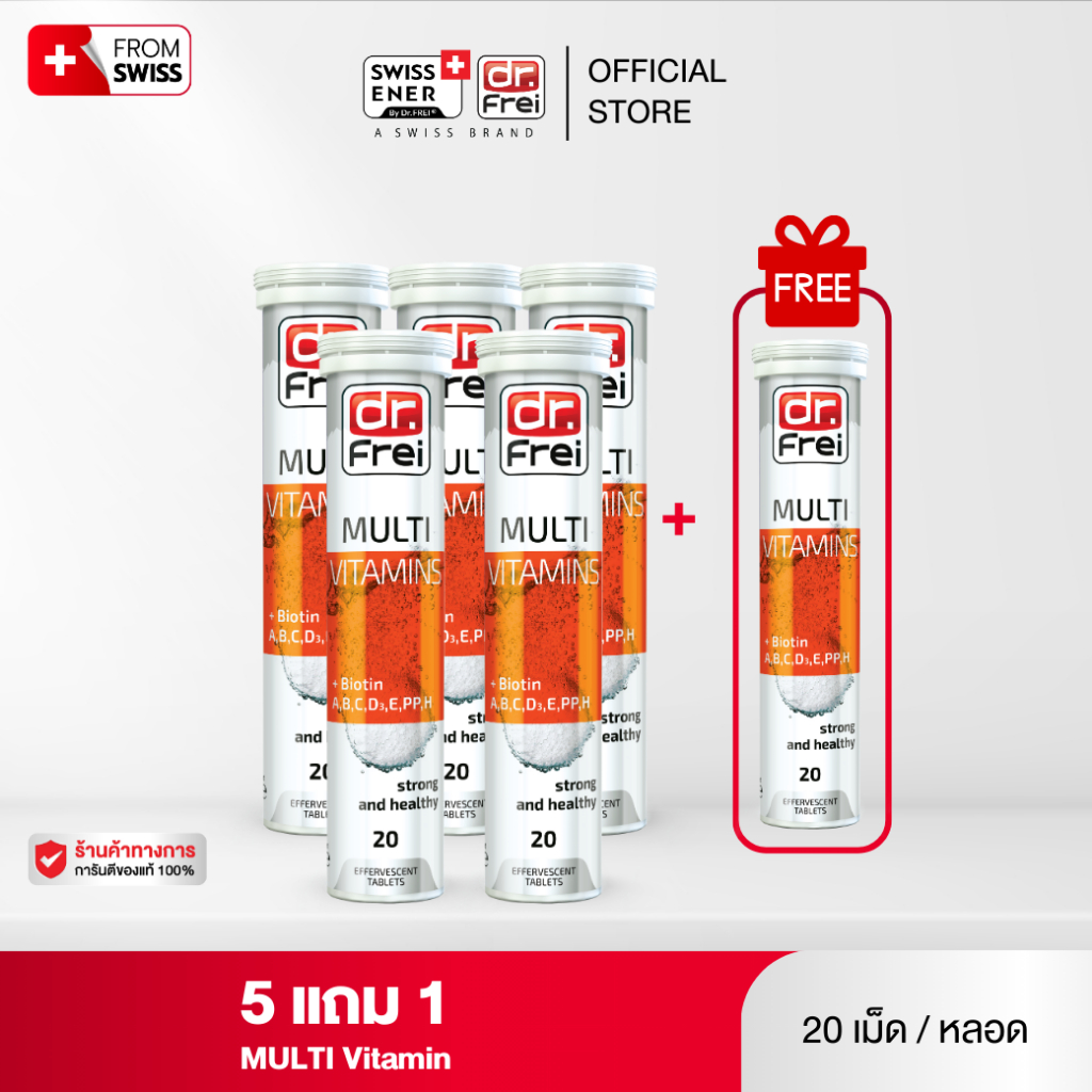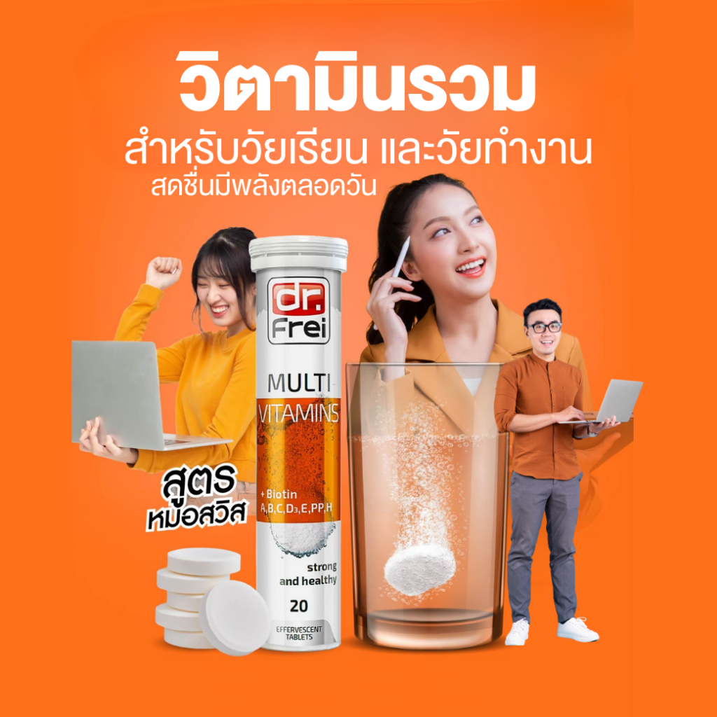 [5 แถม 1] Dr.Frei Multivitamin + Biotin [เม็ดฟู่ ดร.ฟราย มัลติวิตามิน ผสม ไบโอติน] หลอดส้ม