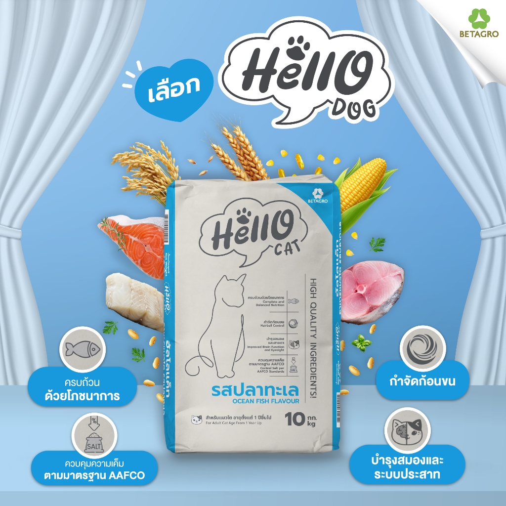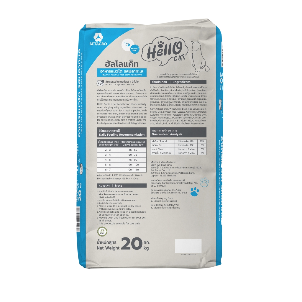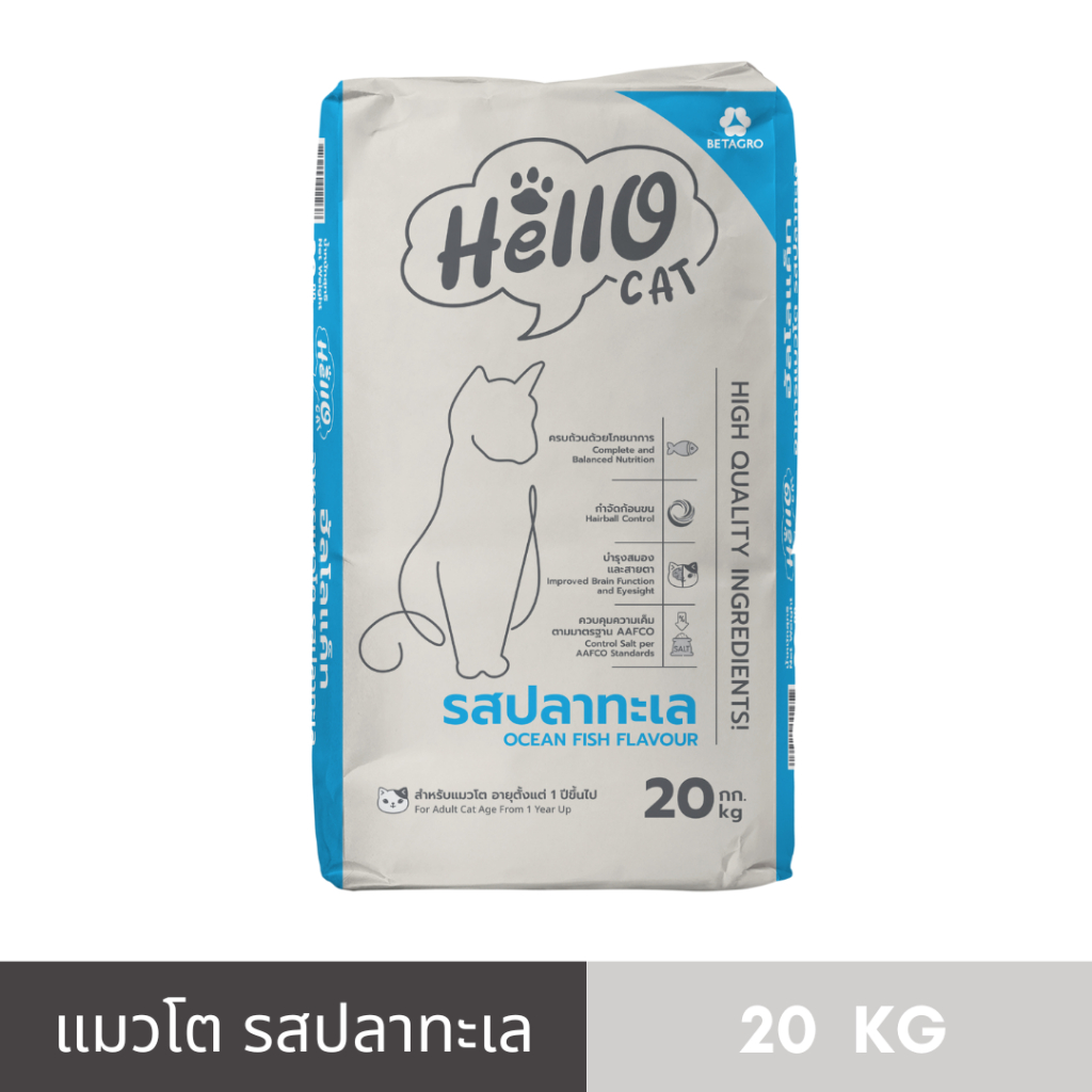 Hello Cat (ฮัลโล แค็ท) อาหารแมวโต รสปลาทะเล 20 kg