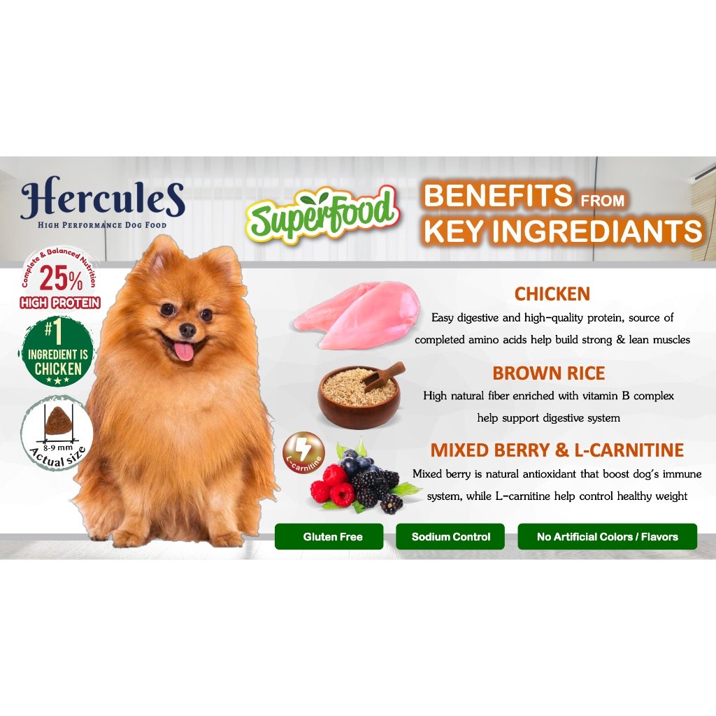 ( 8-10 Kg ) Hercules เฮอร์คิวลิส อาหารสุนัข ชนิดเม็ด มีสูตร พันธุ์เล็ก บำรุผิวหนัง บำรุงข้อ ลูกสุนัข ขนาด 8Kg - 10Kg