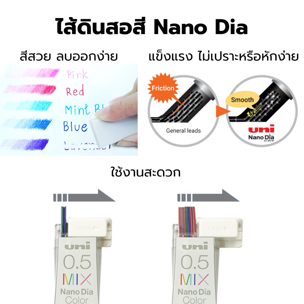 ไส้ดินสอ Uni Smudge-Proof และ ไส้ดินสอสี Uni Nano Dia 0.5