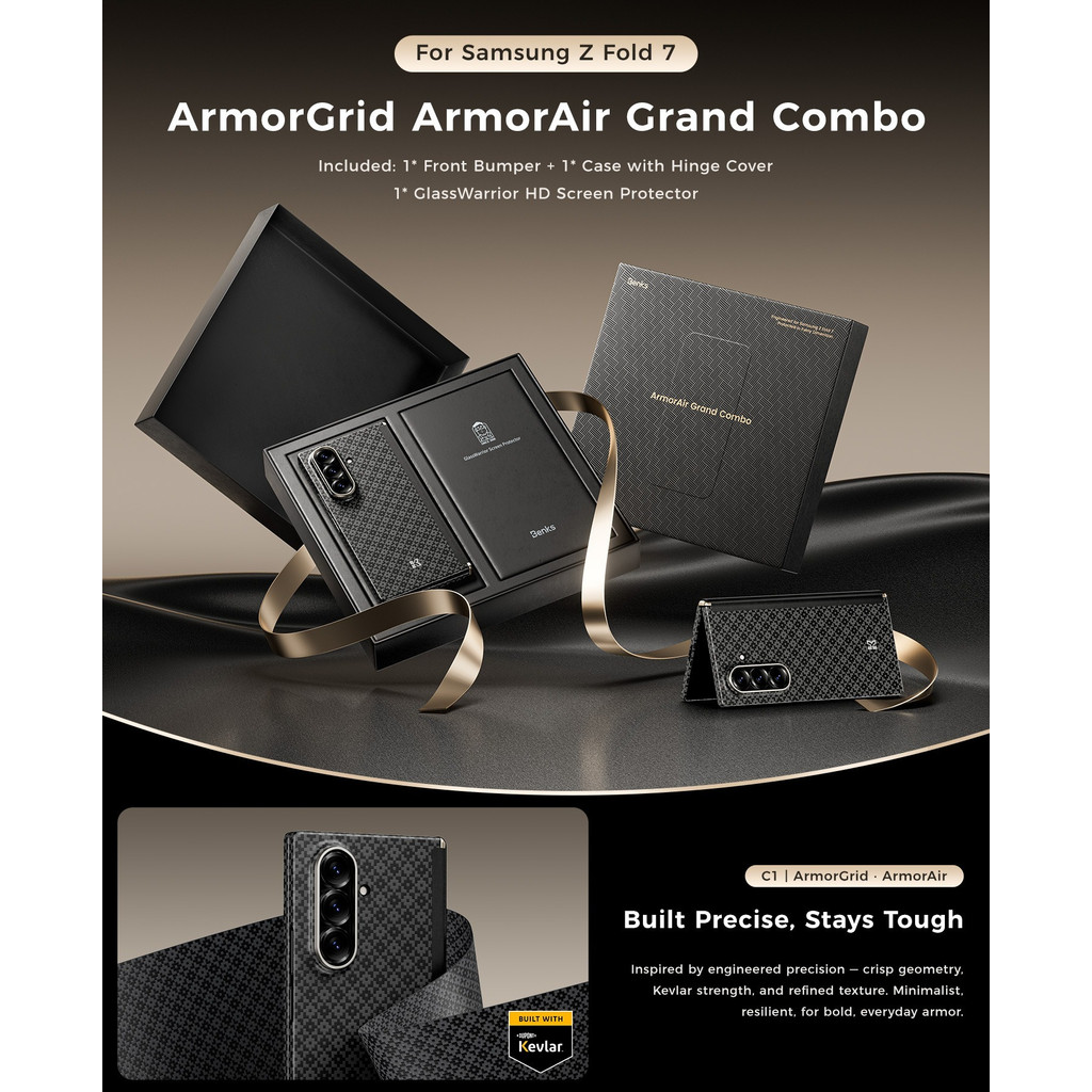 [Benks Official] Benks Grand Combo ArmorGrid ArmorAir สําหรับ Samsung Z Fold 7 เคสสีดํากรอบด้านหน้าสร้างขึ้นพร้อมบานพับเคฟล่าร์ป้องกันหน้าจอ Ultra Slim Light Hard Casing